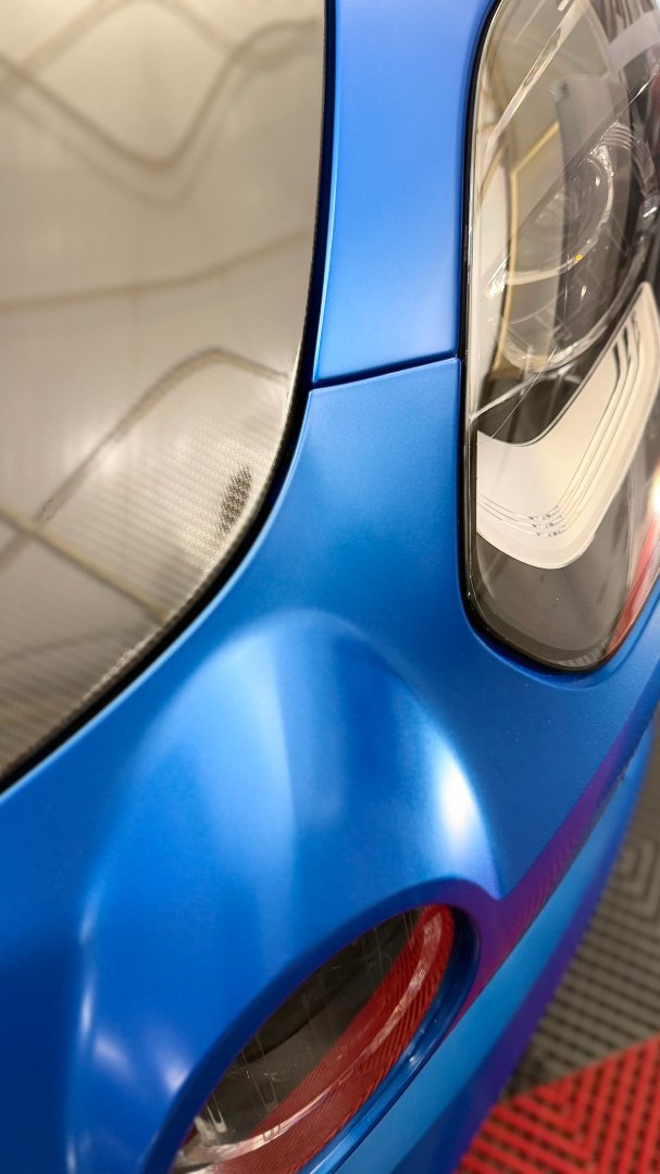 W tym projekcie kluczowe było połączenie funkcjonalności z wyjątkowym stylem. Zamiast klasycznej, bezbarwnej folii PPF, wspólnie z właścicielem zdecydowaliśmy się na bardziej odważne rozwiązanie – satynową wersję folii ochronnej, która całkowicie odmieniła charakter auta.