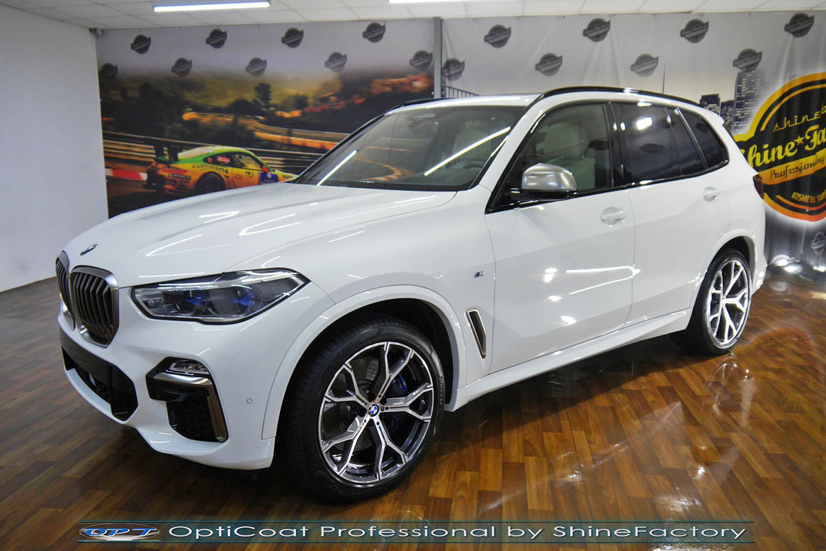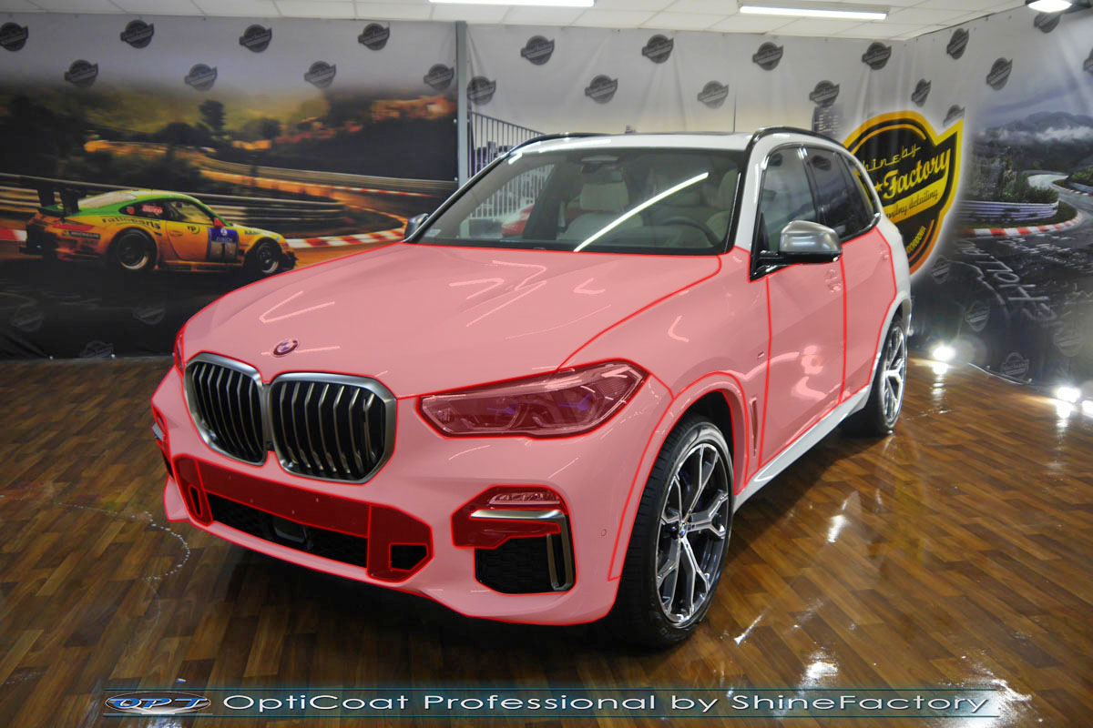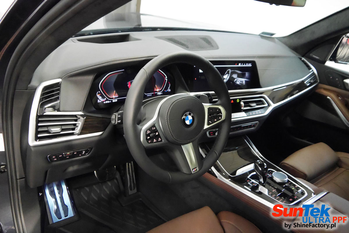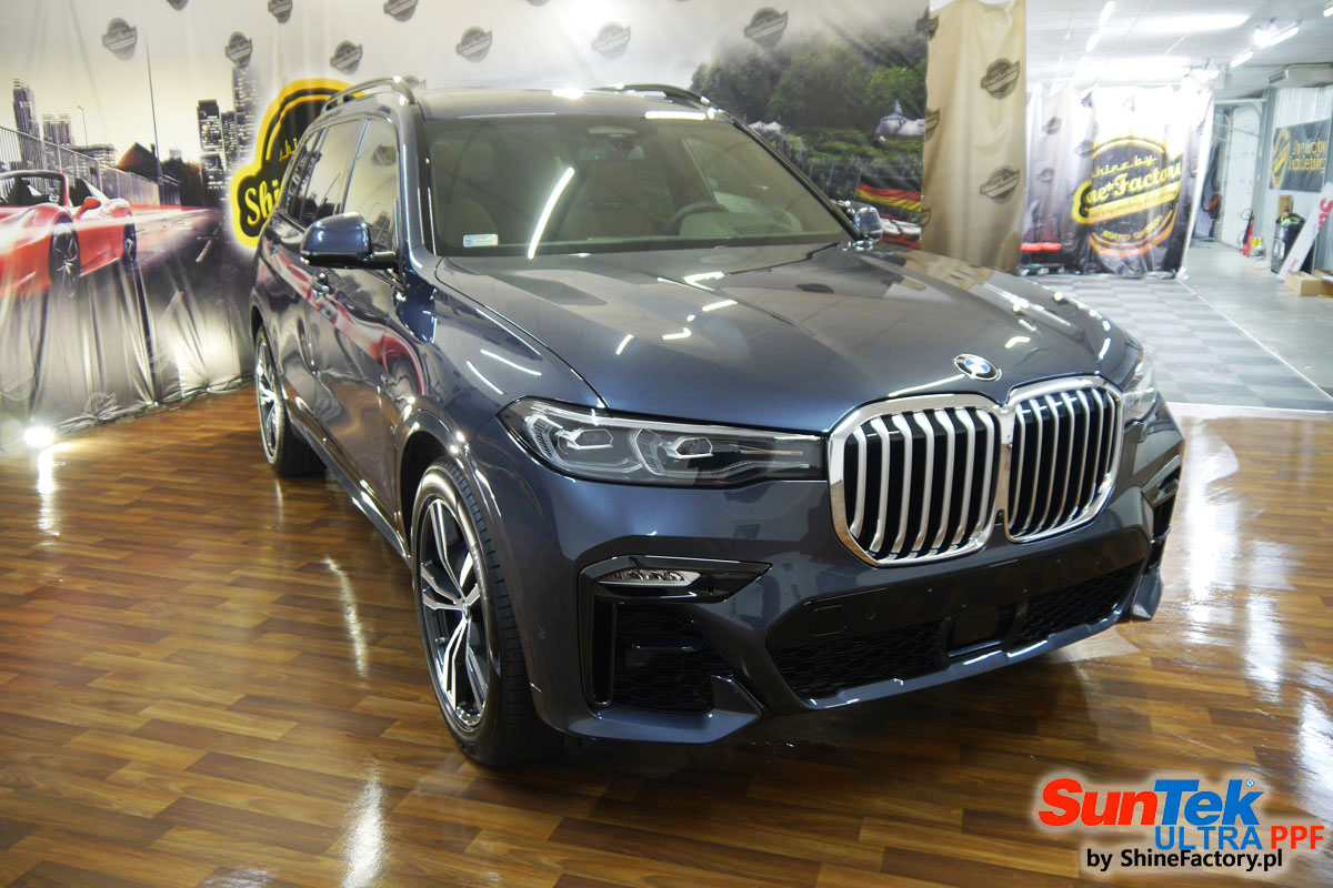 Połączenie bezbarwnych samo-regeneracyjnych folii oraz powłok ceramicznych staje się powoli standardem w idealnym zabezpieczeniu nowego auta. Tym razem mieliśmy przyjemność zająć się nowym BMW X5. Auto zostało przez nas maksymalnie zabezpieczone przed wszystkimi możliwymi uszkodzeniami. Wykorzystane do tego zostały najlepsze na rynku bezbarwne folie ochronne SunTek Ultra PPF oraz natryskowa ceramika OptiCoat PRO. Oczywiście prace rozpoczęliśmy od dokładnego oczyszczenia całego nadwozia z naleciałości oraz delikatnej korekty lakieru w celu usunięcia potransporotwych i posalonowych niedoskonałości. Następnie przystąpiliśmy do aplikacji bezbarwnych folii ochronnych na najbardziej narażone na mocne uszkodzenia el. auta, oczywiście zdecydowaliśmy się jak zawsze wybrać produkt bezkonkurencyjny i nowoczesny na rynku, czyli folie regeneracyjne SunTek Ultra PPF. Po aplikacji folii przeszliśmy do zabezpieczania wszelkich el. auta powłokami, zaaplikowaliśmy w natryskowy sposób grubą warstwę powłoki 9H+ Optimum OptiCoat Professional potwierdzoną testami TUV, pokrywając ją dla maksymalnego efektu wizualnego powłoką GlossCoat, która na końcu została utwardzona w odpowiedniej temp. lampami IR. Oczywiście zajęliśmy się, także zabezpieczeniem pakietem powłok wszelkich innych elementów jak szyby (Gtechniq G1), felgi (DLUX), lampy czy elementy nielakierowane, a także całe wnętrze wraz z zaimpregnowaniem delikatnych skór. Po kilkudziesięciu godzinach pracy BMW nabrało perfekcyjnego wyglądu, połysku oraz co najważniejsze najmocniejszej praktycznie pancernej ochrony na lata. Zapraszamy do szerokiej fotorelacji! Oklejone zostały elementy auta głównie w celu ochrony przed mocnymi mechanicznymi uszkodzeniami jak np. odpryski od kamieni, piaskowanie od żwiru drogowego, mocniejszymi rysami, obiciami czy nawet drobnymi obcierkami parkingowymi. Dokładnie oklejone zostały: