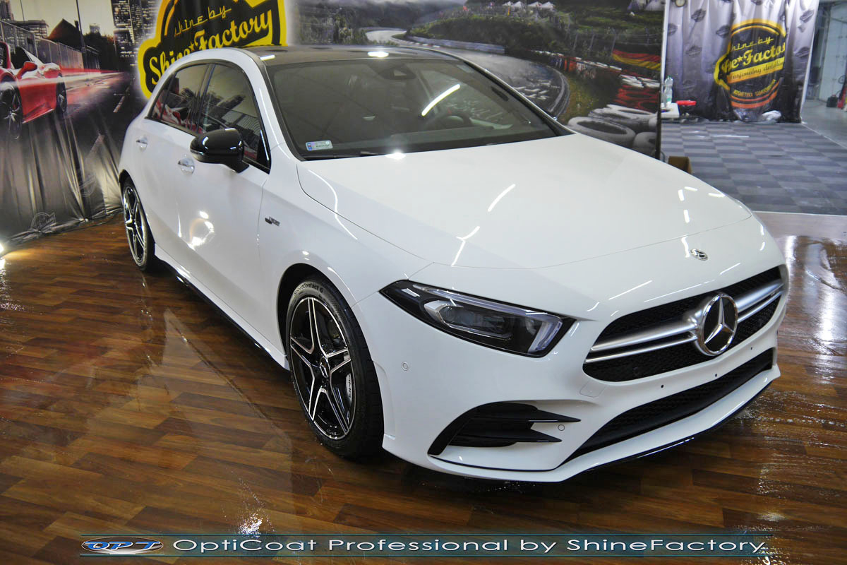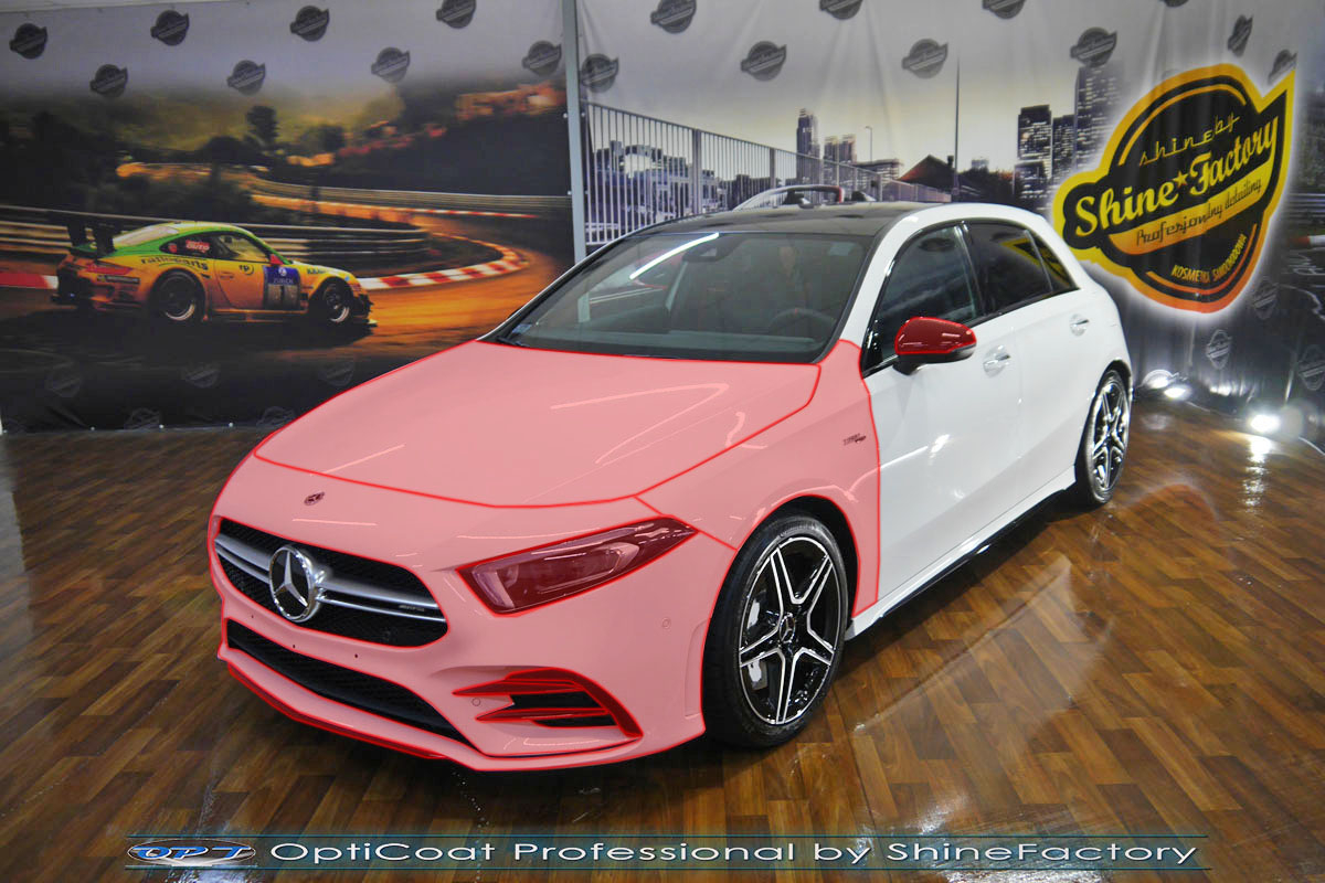 Ä siÄ nowym Mercedesem A35 naszego staÅego klienta. Auto zostaÅo przez nas maksymalnie zabezpieczone przed wszystkimi możliwymi uszkodzeniami. Wykorzystane do tego zostaÅy najlepsze na rynku bezbarwne folie ochronne SunTek Ultra PPF oraz natryskowa ceramika OptiCoat PRO. OczywiÅcie prace rozpoczÄliÅmy od dokÅadnego oczyszczenia caÅego nadwozia z naleciaÅoÅci oraz delikatnej korekty lakieru w celu usuniÄcia potransporotwych i posalonowych niedoskonaÅoÅci. NastÄpnie przystÄ