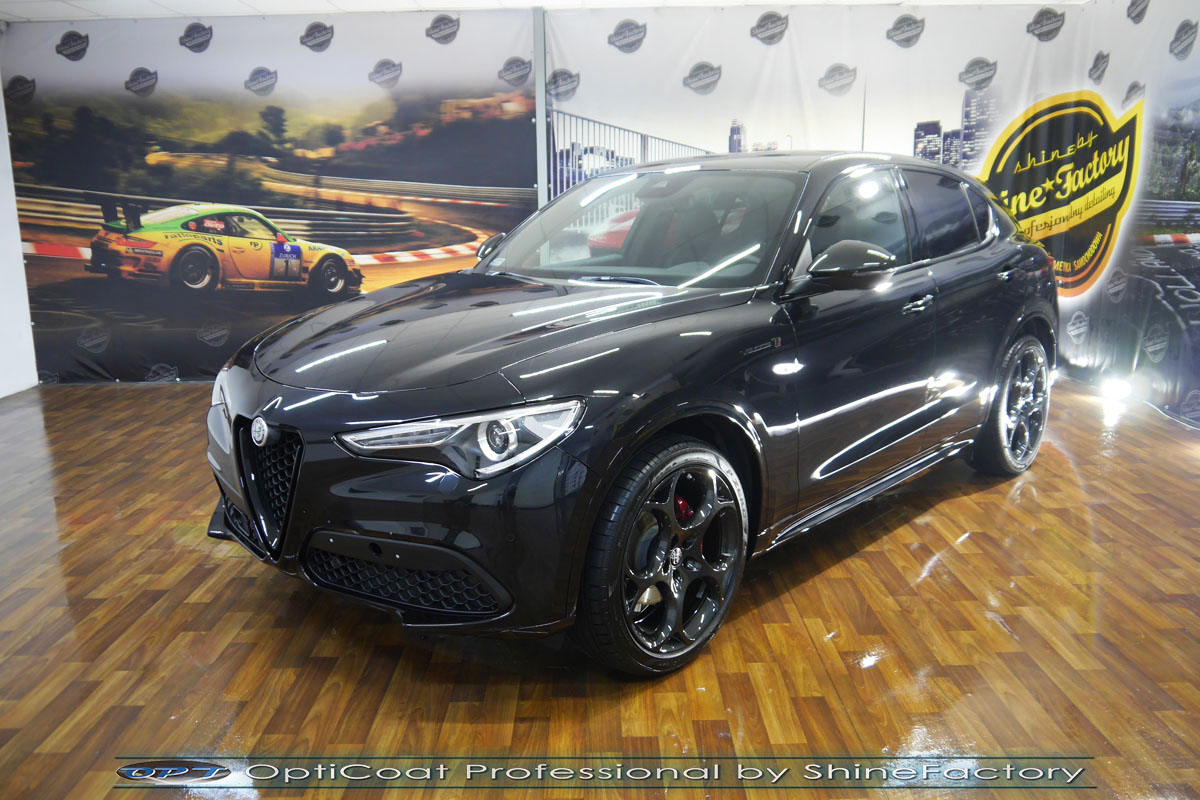 Alfa Stelvio, która trafiÅa do nas w celu zabezpieczenia lakieru oraz wnÄtrza pakietem powÅok ceramicznych. Prace nad nadwoziem rozpoczÄliÅmy od dokÅadnego oczyszczenia i odtÅuszczenia, nastÄpnie lakier przeszedÅ delikatnÄ