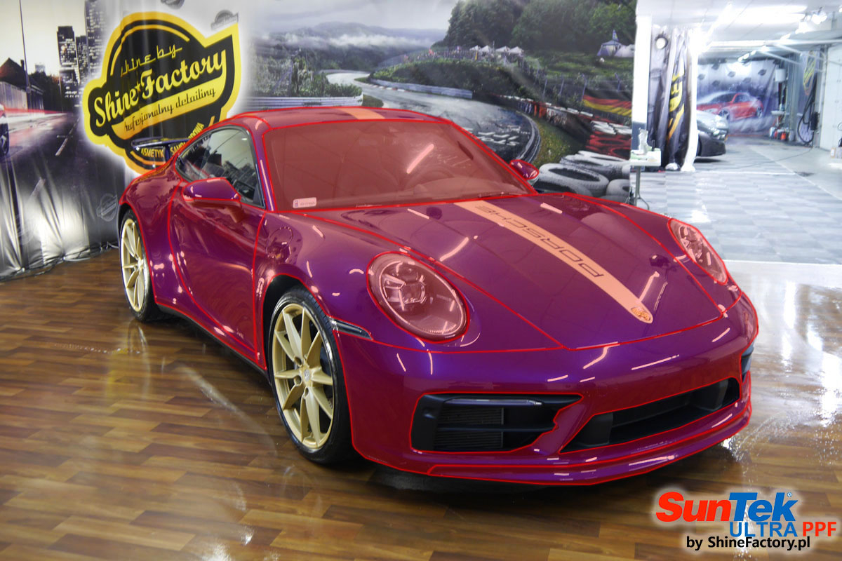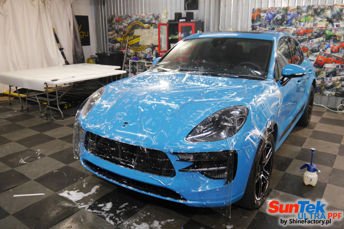 Aplikacja grubych bezbarwnych folii ochronnych staje się powoli standardem w idealnym zabezpieczeniu nowego auta. Tym razem mieliśmy przyjemność zająć się Porsche Macan GTS, auto trafiło do nas po niedużym przebiegu w celu możliwie najlepszego w tej chwili zabezpieczenia lakieru czyli aplikacji bezbarwnych folii ochronnych. Oczywiście prace rozpoczęliśmy od dokładnego oczyszczenia całego nadwozia z naleciałości. Przeprowadziliśmy delikatną korektę i odtłuściliśmy planowane do oklejenia elementy auta. Następnie przystąpiliśmy do aplikacji bezbarwnych folii ochronnych na najbardziej narażone na mocne uszkodzenia el. auta, oczywiście zdecydowaliśmy się jak zawsze wybrać produkt bezkonkurencyjny i nowoczesny na rynku, czyli folie regeneracyjne SunTek Ultra PPF. Po kilkudziesięciu godzinach pracy Porsche nabrało perfekcyjnego wyglądu, połysku oraz co najważniejsze najmocniejszej praktycznie pancernej ochrony na lata. Zapraszamy do fotorelacji! Oklejone zostały przednie elementy głównie w celu ochrony przed mocnymi mechanicznymi uszkodzeniami jak np. odpryski od kamieni, piaskowanie od żwiru drogowego, mocniejszymi rysami czy nawet drobnymi obcierkami parkingowymi. Dokładnie oklejone zostały: - Zderzak przedni - Pełna maska z jednego kawałka folii bez żadnych łączeń, cała zawinięta - Lampy - Próg bagażnika Zapraszamy do zdjęć z prac i efektu końcowego, jak widać folia posiada bardzo duży połysk i przejrzystość dzięki czemu jest praktycznie nie zauważalna.