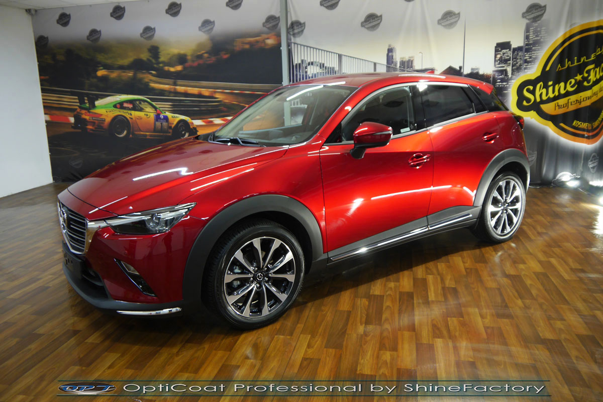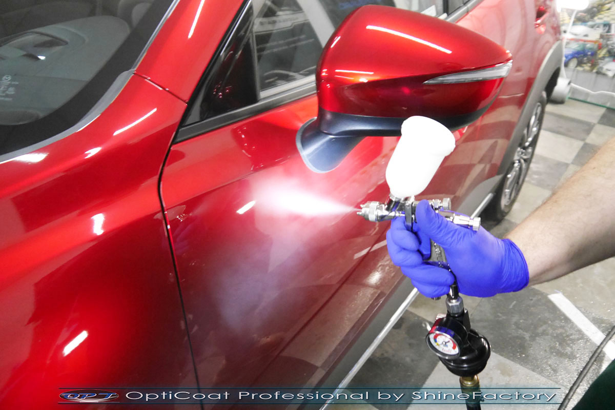 Zapraszamy PaÅstwa do fotorelacji z naszego najczÄÅciej wykonywanego pakietu prac czyli zabezpieczenia nadwozia pakietem powÅok ceramicznych. Mazda, która zostaÅa nam oddana prosto po wyjeździe z salonu przeszÅa nasz pakiet prac dla nowego auta. Prace nad nadwoziem rozpoczÄliÅmy od dokÅadnego oczyszczenia i odtÅuszczenia, nastÄpnie lakier przeszedÅ delikatnÄ