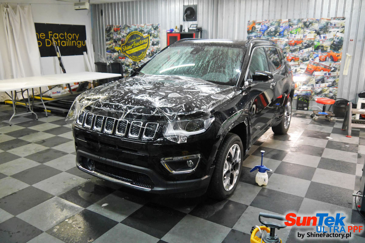 Zabezpieczenie frontów aut bezbarwnymi foliami ochronnymi staje się powoli standardem, coraz częściej także zabezpieczane w ten sposób są auta w całości co daje do tego czasu nieosiągalne perfekcyjne zabezpieczenie i efekt wizualny. Tym razem mieliśmy przyjemność zająć się Jeep'em Compass naszego stałego klienta. Decyzja wz. z zabezpieczeniem padła na bezkompromisowe połączanie znakomitych bezbarwnych folii ochronnych SunTek Ultra PPF z 10 letnią gwarancją oraz pakietu powłok ceramicznych. Standardowo prace zaczęliśmy od bardzo dokładnego oczyszczenia nadwozia z wszelkich naleciałości. Kolejno zajęliśmy się inspekcją lakieru i skorygowaniem oraz doprowadzeniem go do możliwej perfekcji z defektów posalonowych / potransportowych. Po przygotowaniu przeszliśmy do zabezpieczenia auta, najpierw aplikując bezbarwne folie ochronne. Folie zazwyczaj aplikuje się na najbardziej narażone el. auta jak przód, tym razem zdecydowaliśmy się praktycznie całe auto pokryć najlepszymi na świecie regeneracyjnymi foliami SunTek Ultra aby uzyskać 100% ochronę lakieru, który będzie całkowicie izolowany od środowiska zewnętrznego i nic nie będzie wstanie go uszkodzić. Po aplikacji folii przeszliśmy do zabezpieczania wszelkich el. auta powłokami, zaaplikowaliśmy pakiet powłok na całe auto, folie, szyby (Gtechniq G1), felgi (DLUX), elementy nielakierowane, a także całe wnętrze wraz z zaimpregnowaniem delikatnych skór. Po kilkudziesięciu godzinach pracy Jeep nabrał perfekcyjnego wyglądu, połysku oraz co najważniejsze najmocniejszej praktycznie pancernej ochrony na lata. Zapraszamy do szerokiej fotorelacji!