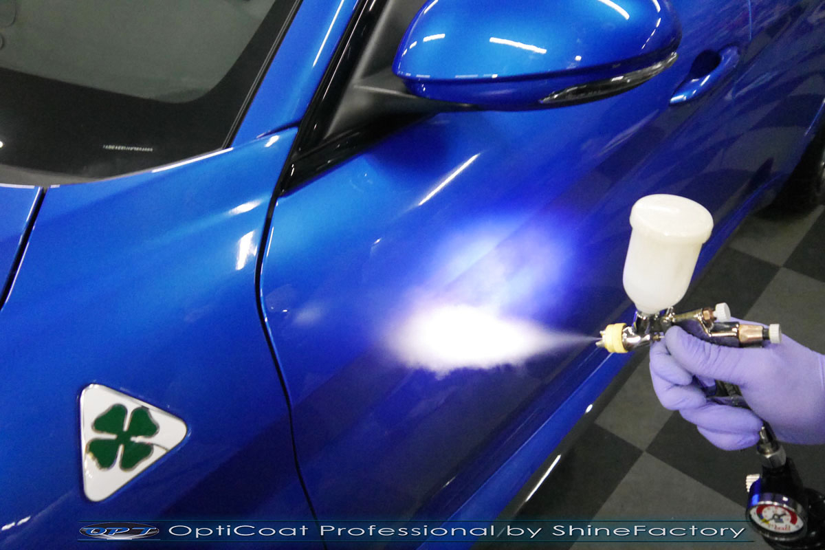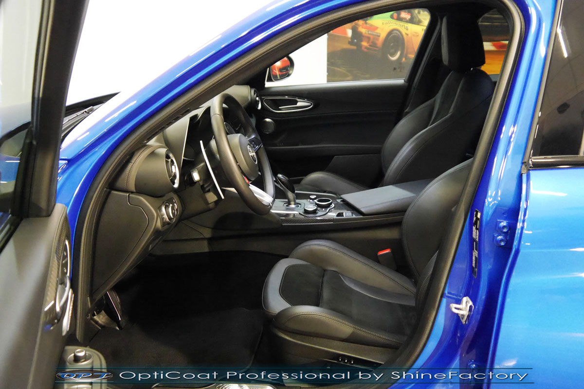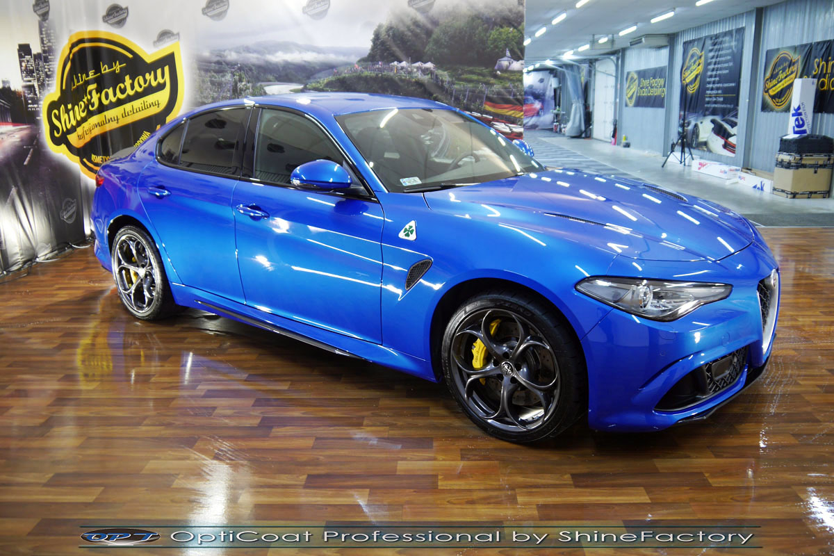 Witamy. Tym razem chcemy przedstawić fotorelację z prac nad lekko używaną Alfą Romeo w najmocniejszej wersji QV.. Naszym zadaniem było odświeżenie lakieru (niestety posiadał już sporą ilość rys, zmatowień oraz wżerów) oraz pokrycie powłoką ceramiczną aby przywrócić idealny wygląd oraz zabezpieczyć lakier na przyszłe lata użytkowania. Zaczęliśmy od oczyszczenia kół oraz dogłębnego oczyszczenia nadwozia. Następnie przystąpiliśmy do najbardziej czasochłonnego i najważniejszego etapu prac czyli polerowania zniszczonego lakieru. Po kilku dniach prac Alfa była gotowa do zabezpieczania powłoką ceramiczną. Finalnie zdecydowaliśmy się zabezpieczyć każdy element (lakier, felgi, szyby itp) najlepszymi powłokami ceramicznymi/kwarcowymi z rynku, sam lakier testowaną w laboratoryjny sposób przez TUV powłoką ceramiczną OptiCoat Professional/GlossCoat w innowacyjny natryskowy sposób co zapewnia maksymalny połysk i grubą ochronę lakieru na bardzo długi czas. Finalnie pakiet powłok został wygrzany w odpowiedniej temperaturze lampami IR. Zajęliśmy się także wnętrzem, które zostało dokładnie oczyszczone / wyprane oraz zabezpieczone odżywkami w każdym elemencie. Dzięki detailingowi oraz finalnemu pokryciu ceramiką auto odmieniło się nie do poznania oraz przez długi czas będzie cieszyło oko idealną prezentacją lakieru i maksymalnym blaskiem. Zapraszamy do szerokiej fotorelacji i zdjęć efektu końcowego!