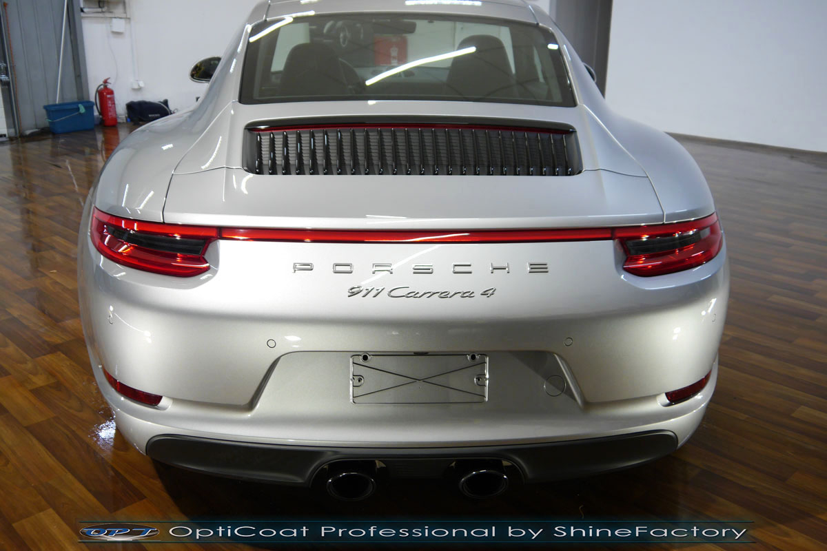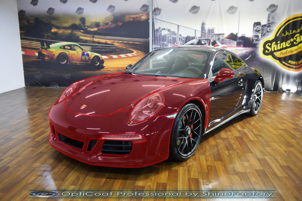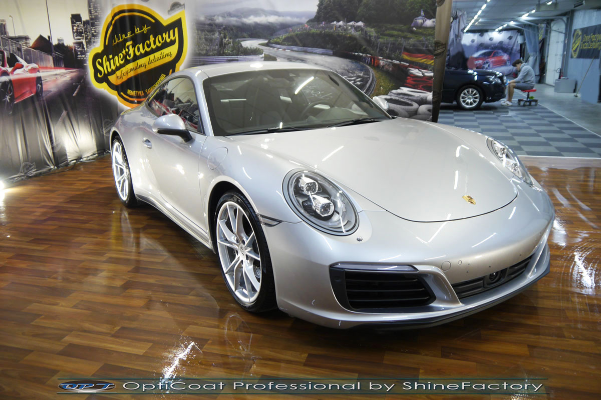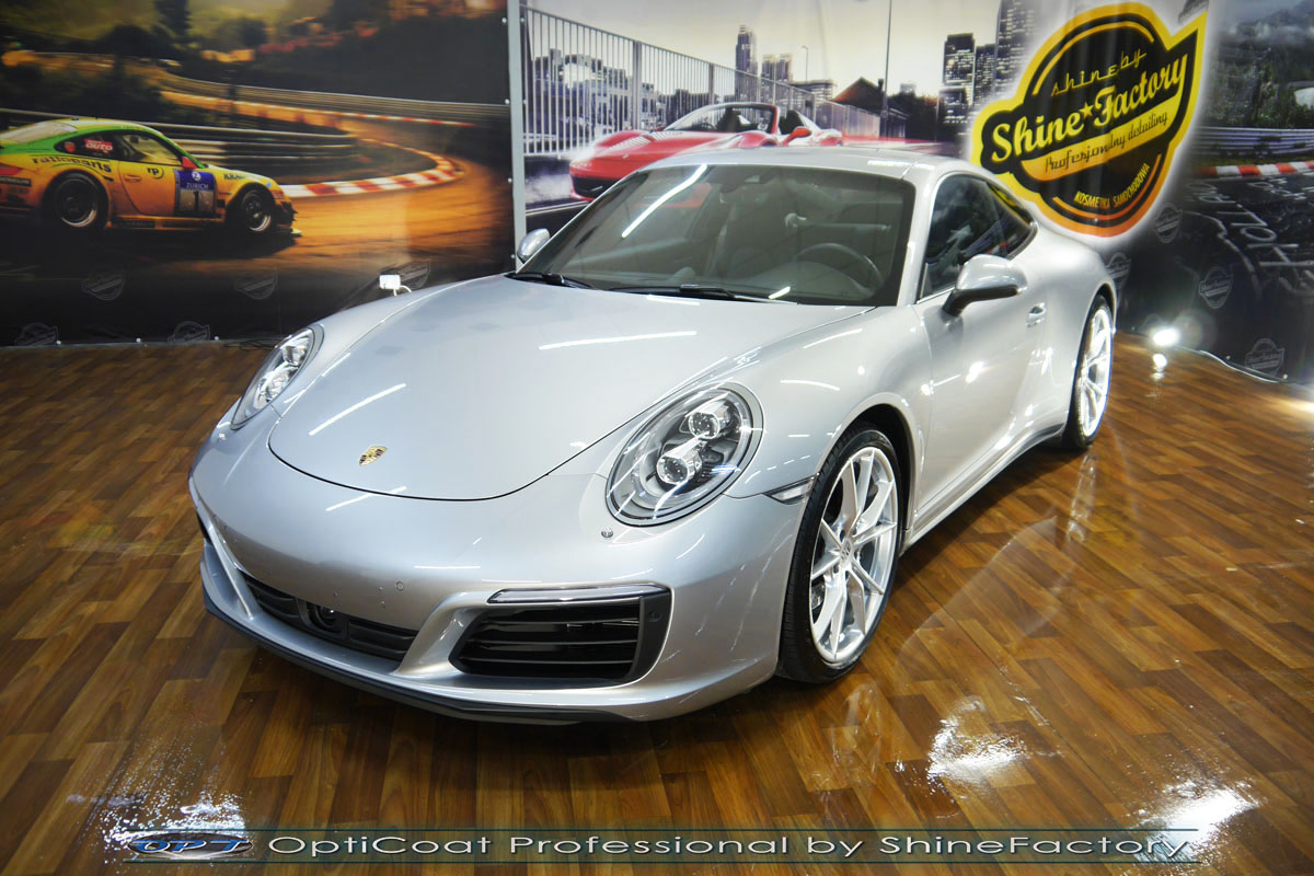 Połączenie bezbarwnych samo-regeneracyjnych folii oraz powłok ceramicznych staje się powoli standardem w idealnym zabezpieczeniu auta. Tym razem mieliśmy przyjemność zająć się Porsche 911. Auto trafiło do nas kiedy to po kilku tysiącach kilometrów przebiegu właściciel zauważył jak strasznie delikatny jest lakier jego auta.. Decyzja wz. z zabezpieczeniem padła oczywiście na połączanie znakomitych bezbarwnych folii ochronnych SunTek Ultra PPF z 10 letnią gwarancją oraz pakietu powłok ceramicznych. Auto zostało przez nas maksymalnie zabezpieczone przed wszystkimi możliwymi uszkodzeniami. Wykorzystane do tego zostały najlepsze na rynku bezbarwne folie ochronne SunTek Ultra PPF oraz natryskowa ceramika OptiCoat PRO. Oczywiście prace rozpoczęliśmy od dokładnego oczyszczenia całego nadwozia z naleciałości oraz korekty lakieru zniszczonego lakieru. Następnie przystąpiliśmy do aplikacji bezbarwnych folii ochronnych na najbardziej narażone na mocne uszkodzenia el. auta, oczywiście zdecydowaliśmy się jak zawsze wybrać produkt bezkonkurencyjny i nowoczesny na rynku, czyli folie regeneracyjne SunTek Ultra PPF. Po aplikacji folii przeszliśmy do zabezpieczania wszelkich el. auta powłokami, zaaplikowaliśmy w natryskowy sposób grubą warstwę powłoki 9H+ Optimum OptiCoat Professional potwierdzoną testami TUV, pokrywając ją dla maksymalnego efektu wizualnego powłoką GlossCoat, która na końcu została utwardzona w odpowiedniej temp. lampami IR. Oczywiście zajęliśmy się, także zabezpieczeniem pakietem powłok wszelkich innych elementów jak szyby (Gtechniq G1), felgi (DLUX), lampy czy elementy nielakierowane. Zajęliśmy się także wnętrzem, które zostało dokładnie oczyszczone / wyprane oraz zabezpieczone odżywkami w każdym elemencie Po kilkudziesięciu godzinach pracy Porsche nabrało perfekcyjnego wyglądu, połysku oraz co najważniejsze najmocniejszej praktycznie pancernej ochrony na lata. Zapraszamy do szerokiej fotorelacji! Oklejone zostało praktycznie całe auto w celu ochrony przed wszelkimi uszkodzeniami jak np. odpryski od kamieni, piaskowanie od żwiru drogowego, mocniejszymi rysami, obiciami czy nawet drobnymi obcierkami parkingowymi. Dokładnie oklejone zostały: - Maska - Zderzak przedni - Błotniki przednie - Lampy - Lusterka Zapraszamy do zdjęć z prac i efekt końcowego, jak widać folia posiada bardzo duży połysk i przejrzystość dzięki czemu jest praktycznie nie zauważalna.