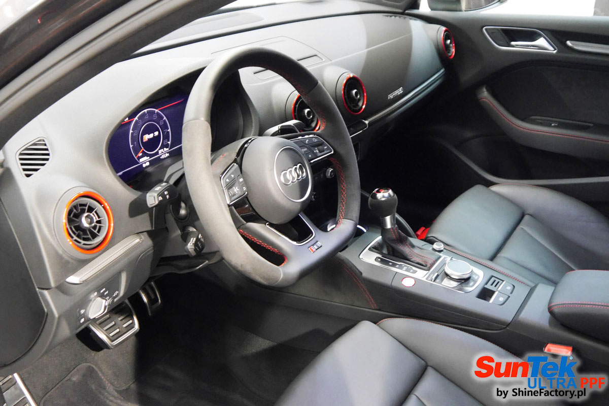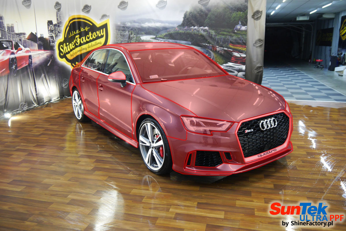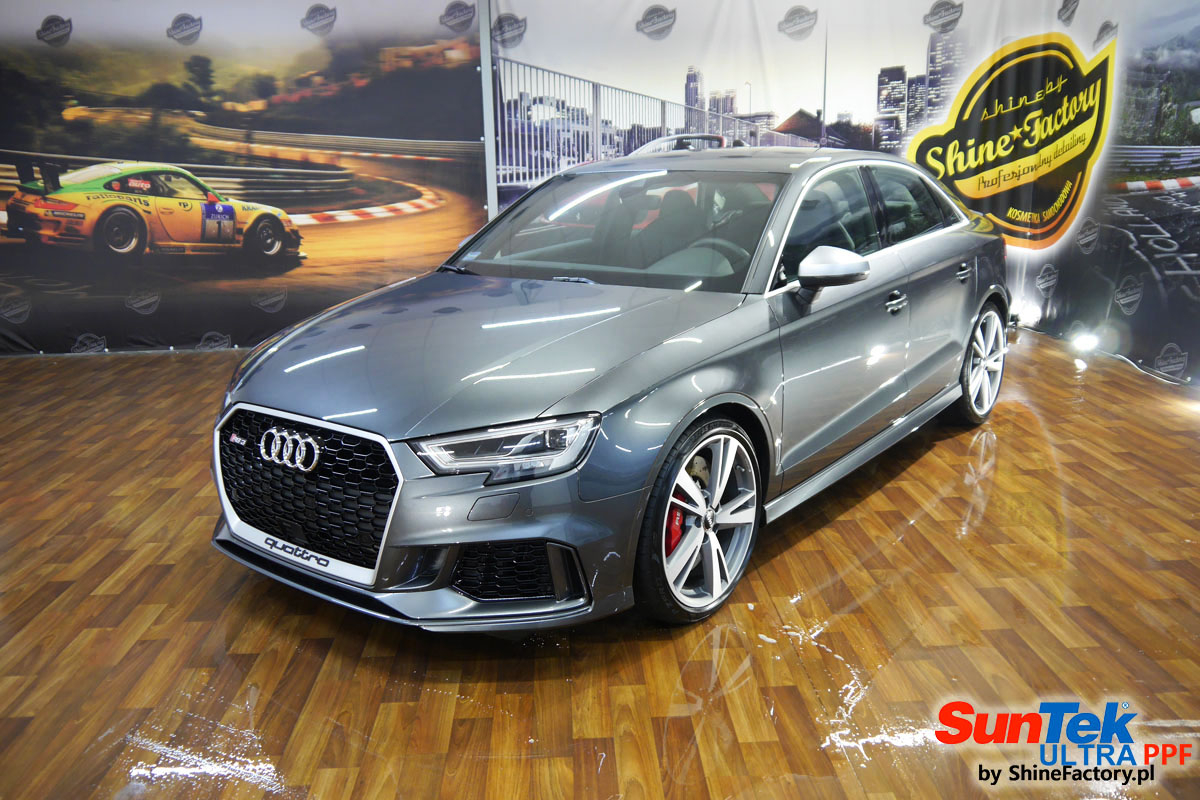 Zabezpieczenie frontów aut bezbarwnymi foliami ochronnymi staje się powoli standardem, coraz częściej także zabezpieczane w ten sposób są auta w całości co daje do tego czasu nieosiągalne perfekcyjne zabezpieczenie i efekt wizualny. Tym razem mieliśmy przyjemność zająć się Audi RS3. Decyzja wz. z zabezpieczeniem padła na bezkompromisowe połączanie znakomitych bezbarwnych folii ochronnych SunTek Ultra PPF z 10 letnią gwarancją oraz pakietu powłok ceramicznych. Standardowo prace zaczęliśmy od bardzo dokładnego oczyszczenia nadwozia z wszelkich naleciałości. Kolejno zajęliśmy się inspekcją lakieru i skorygowaniem oraz doprowadzeniem go do możliwej perfekcji z defektów posalonowych / potransportowych. Po przygotowaniu przeszliśmy do zabezpieczenia auta, najpierw aplikując bezbarwne folie ochronne. Folie zazwyczaj aplikuje się na najbardziej narażone el. auta jak przód, tym razem zdecydowaliśmy się praktycznie całe auto pokryć najlepszymi na świecie regeneracyjnymi foliami SunTek Ultra aby uzyskać 100% ochronę lakieru, który będzie całkowicie izolowany od środowiska zewnętrznego i nic nie będzie wstanie go uszkodzić. Po aplikacji folii przeszliśmy do zabezpieczania wszelkich el. auta powłokami, zaaplikowaliśmy pakiet powłok na całe auto, folie, szyby (Gtechniq G1), felgi (DLUX), elementy nielakierowane, a także całe wnętrze wraz z zaimpregnowaniem delikatnych skór. Po kilkudziesięciu godzinach pracy Audi nabrało perfekcyjnego wyglądu, połysku oraz co najważniejsze najmocniejszej praktycznie pancernej ochrony na lata. Zapraszamy do szerokiej fotorelacji!