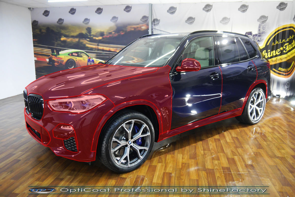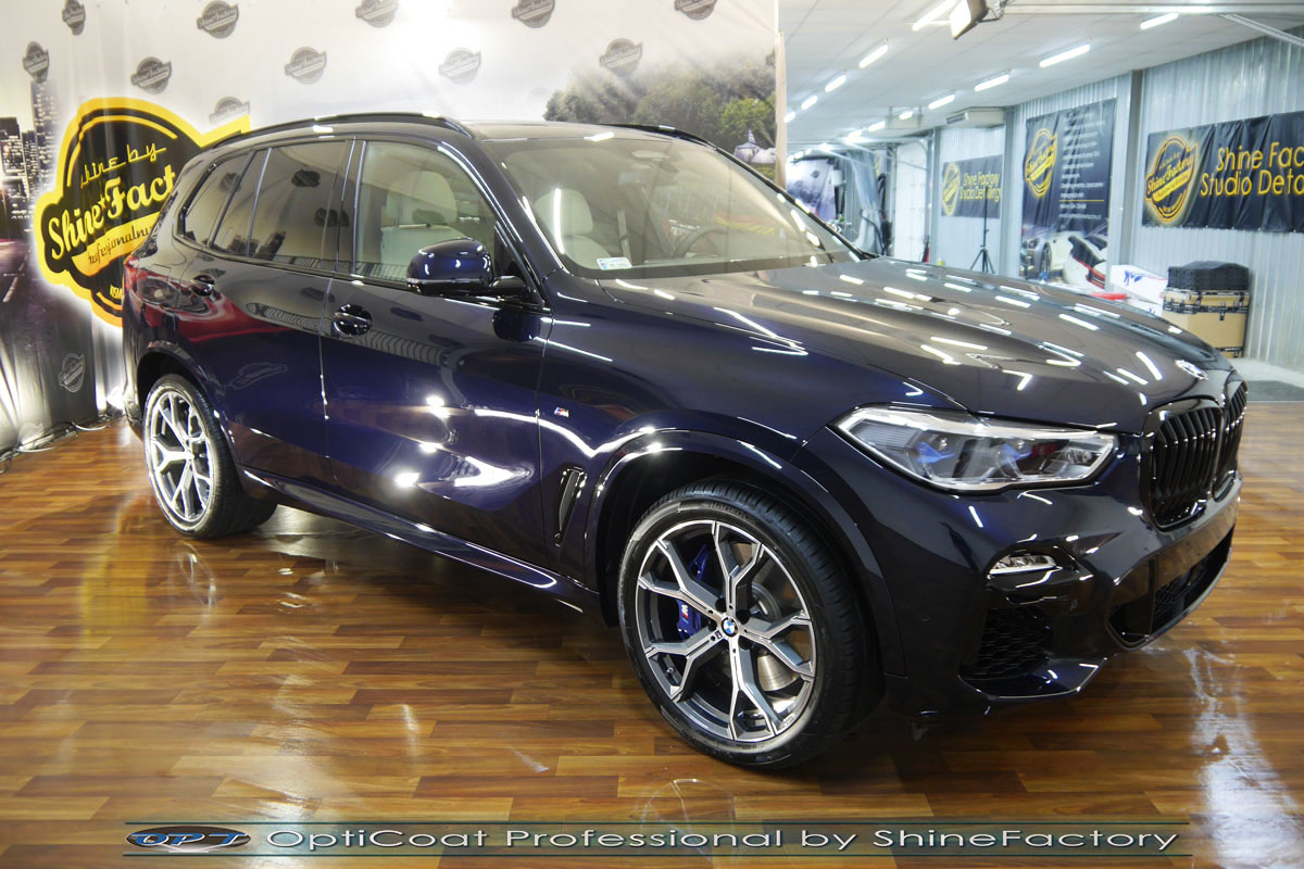 Połączenie bezbarwnych samo-regeneracyjnych folii oraz powłok ceramicznych staje się powoli standardem w idealnym zabezpieczeniu nowego auta. Tym razem mieliśmy przyjemność zająć się nowym BMW X5 w klasycznym kolorze CarbonSchwarz. Auto zostało przez nas maksymalnie zabezpieczone przed wszystkimi możliwymi uszkodzeniami. Wykorzystane do tego zostały najlepsze na rynku bezbarwne folie ochronne SunTek Ultra PPF oraz natryskowa ceramika OptiCoat PRO. Oczywiście prace rozpoczęliśmy od dokładnego oczyszczenia całego nadwozia z naleciałości oraz delikatnej korekty lakieru w celu usunięcia potransporotwych i posalonowych niedoskonałości. Następnie przystąpiliśmy do aplikacji bezbarwnych folii ochronnych na najbardziej narażone na mocne uszkodzenia el. auta, oczywiście zdecydowaliśmy się jak zawsze wybrać produkt bezkonkurencyjny i nowoczesny na rynku, czyli folie regeneracyjne SunTek Ultra PPF. Po aplikacji folii przeszliśmy do zabezpieczania wszelkich el. auta powłokami, zaaplikowaliśmy w natryskowy sposób grubą warstwę powłoki 9H+ Optimum OptiCoat Professional potwierdzoną testami TUV, pokrywając ją dla maksymalnego efektu wizualnego powłoką GlossCoat, która na końcu została utwardzona w odpowiedniej temp. lampami IR. Oczywiście zajęliśmy się, także zabezpieczeniem pakietem powłok wszelkich innych elementów jak szyby (Gtechniq G1), felgi (DLUX), lampy czy elementy nielakierowane, a także całe wnętrze wraz z zaimpregnowaniem delikatnych skór. Po kilkudziesięciu godzinach pracy BMW nabrało perfekcyjnego wyglądu, połysku oraz co najważniejsze najmocniejszej praktycznie pancernej ochrony na lata. Zapraszamy do szerokiej fotorelacji! Oklejone zostały przednie elementy auta głównie w celu ochrony przed mocnymi mechanicznymi uszkodzeniami jak np. odpryski od kamieni, piaskowanie od żwiru drogowego, mocniejszymi rysami, obiciami czy nawet drobnymi obcierkami parkingowymi. Dokładnie oklejone zostały: - Zderzak przedni - Pełna maska - Błotniki przednie - Lampy - Lusterka - Progi - Nadkola przednie oraz tylne - Ranty drzwi Zapraszamy do zdjęć z prac i efektu końcowego, jak widać folia posiada bardzo duży połysk i przejrzystość dzięki czemu jest praktycznie nie zauważalna.