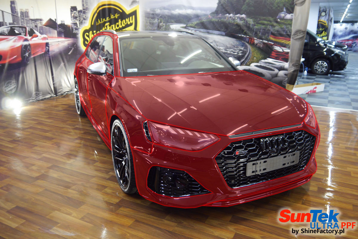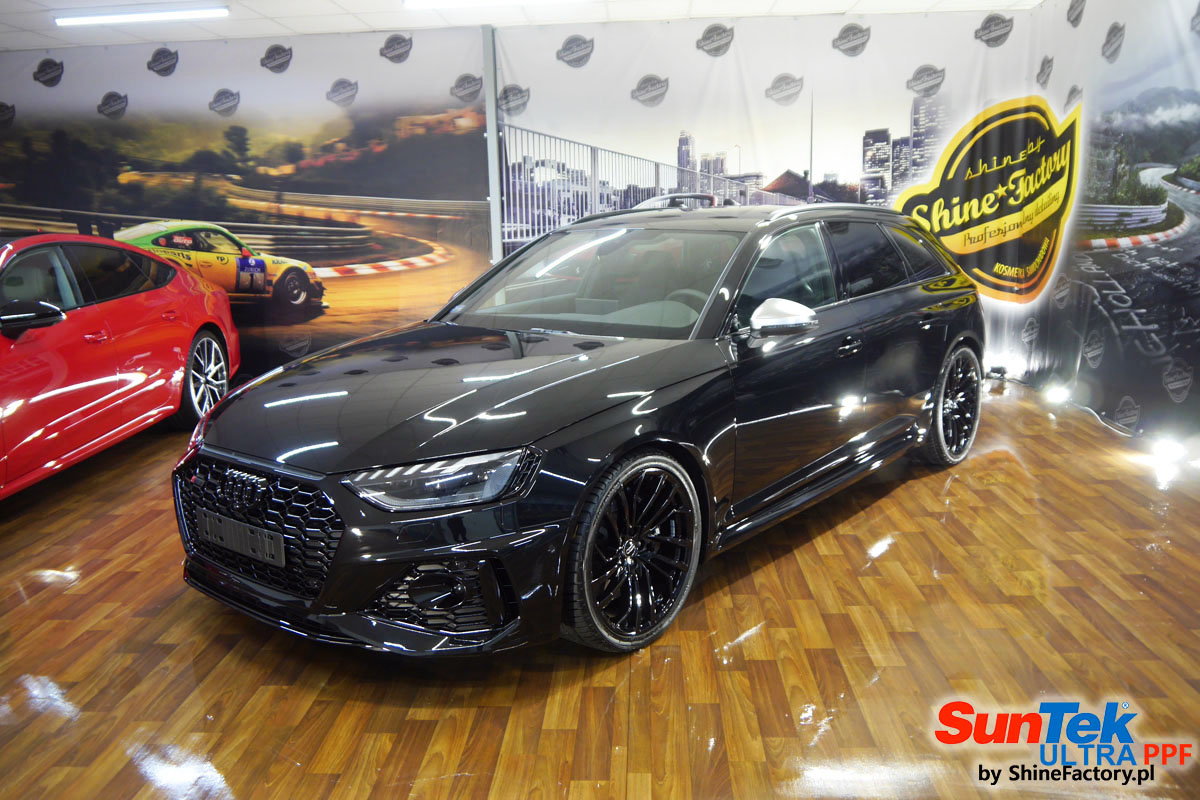 Zabezpieczenie frontów aut bezbarwnymi foliami ochronnymi staje się powoli standardem, coraz częściej także zabezpieczane w ten sposób są auta w całości co daje do tego czasu nieosiągalne perfekcyjne zabezpieczenie i efekt wizualny. Tym razem mieliśmy przyjemność zająć się Audi RS4 które zostało nam powierzone po niewielkim przebiegu. Decyzja wz. z zabezpieczeniem padła na bezkompromisowe połączanie znakomitych bezbarwnych folii ochronnych SunTek Ultra PPF z 10 letnią gwarancją oraz pakietu powłok ceramicznych. Standardowo prace zaczęliśmy od bardzo dokładnego oczyszczenia nadwozia z wszelkich naleciałości. Kolejno zajęliśmy się inspekcją lakieru i skorygowaniem oraz doprowadzeniem go do możliwej perfekcji z defektów posalonowych / potransportowych. Po przygotowaniu przeszliśmy do zabezpieczenia auta, najpierw aplikując bezbarwne folie ochronne. Folie zazwyczaj aplikuje się na najbardziej narażone el. auta jak przód, tym razem zdecydowaliśmy się praktycznie całe auto pokryć najlepszymi na świecie regeneracyjnymi foliami SunTek Ultra aby uzyskać 100% ochronę lakieru, który będzie całkowicie izolowany od środowiska zewnętrznego i nic nie będzie wstanie go uszkodzić. Po aplikacji folii przeszliśmy do zabezpieczania wszelkich el. auta powłokami, zaaplikowaliśmy pakiet powłok na całe auto, folie, szyby (Gtechniq G1), felgi (DLUX), elementy nielakierowane, a także całe wnętrze wraz z zaimpregnowaniem delikatnych skór. Po kilkudziesięciu godzinach pracy Audi nabrało perfekcyjnego wyglądu, połysku oraz co najważniejsze najmocniejszej praktycznie pancernej ochrony na lata. Zapraszamy do szerokiej fotorelacji!