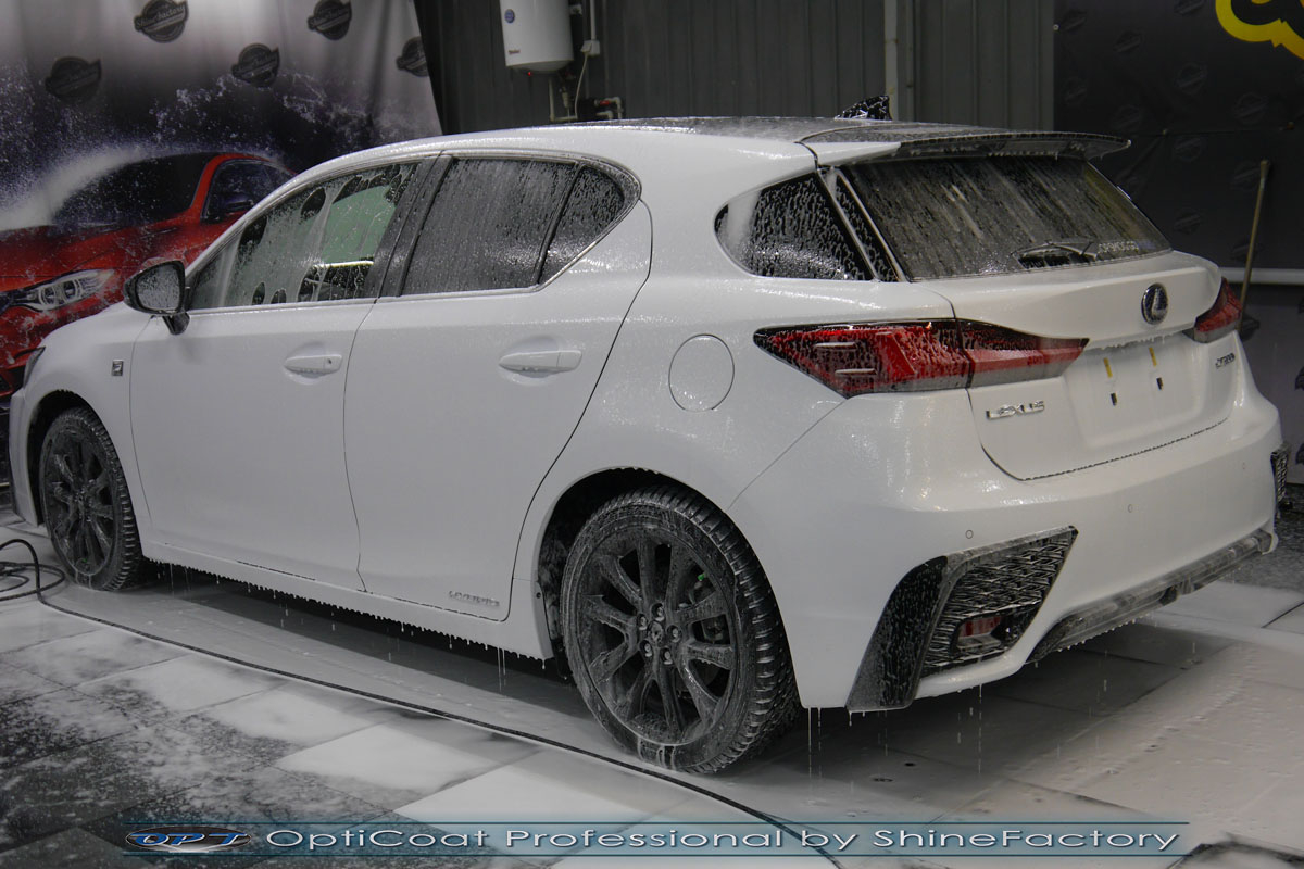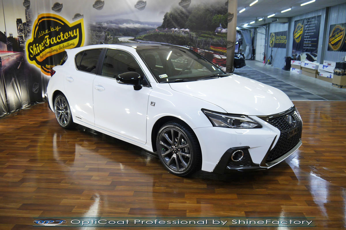 Zapraszamy Państwa do fotorelacji z naszego najczęściej wykonywanego pakietu prac czyli zabezpieczenia nadwozia pakietem powłok ceramicznych. Lexus, który został nam oddany prosto po wyjeździe z salonu przez naszego stałego klienta, przeszedł nasz pakiet prac dla nowego auta. Prace nad nadwoziem rozpoczęliśmy od dokładnego oczyszczenia i odtłuszczenia, następnie lakier przeszedł delikatną korektę w celu usunięcia po salonowych niedoskonałości. Po tych czynnościach przeszliśmy do aplikacji powłok na wszelkie elementy jak lakier, szyby (bezapelacyjnie najlepszą powłoką Gtechniq G1), felgi (pancerny CQ DLUX), detale itp itd. Najważniejsze, na sam lakier zaaplikowaliśmy maksymalnie grubą natryskową warstwę kompozytu ceramicznego (100% powłoki na aucie) opartego na SiC- OptiCoat Professional połączoną z powłoką GlossCoat, która zapewni ochronę, zminimalizowane brudzenie oraz ułatwione do maksimum mycie.
