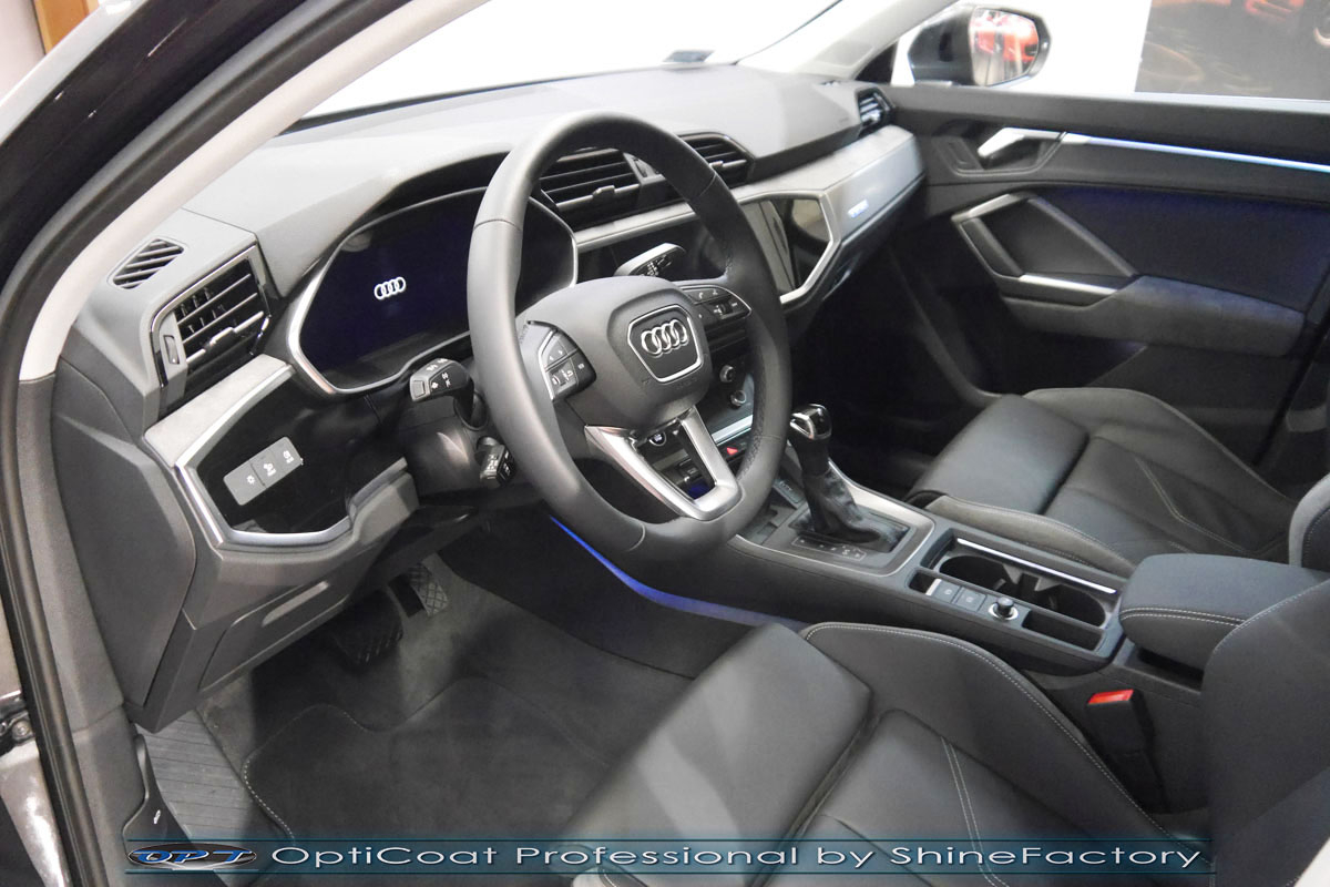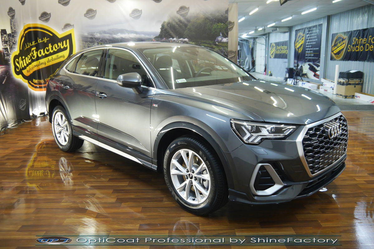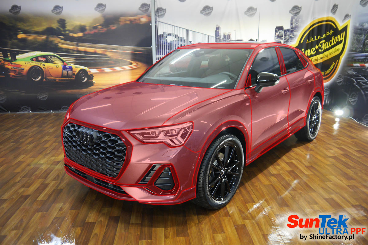 Połączenie bezbarwnych samo-regeneracyjnych folii oraz powłok ceramicznych staje się powoli standardem w idealnym zabezpieczeniu nowego auta. Tym razem mieliśmy przyjemność zająć się nowym Audi Q3. Auto zostało przez nas maksymalnie zabezpieczone przed wszystkimi możliwymi uszkodzeniami. Wykorzystane do tego zostały najlepsze na rynku bezbarwne folie ochronne SunTek Ultra PPF oraz natryskowa ceramika OptiCoat PRO. Oczywiście prace rozpoczęliśmy od dokładnego oczyszczenia całego nadwozia z naleciałości oraz delikatnej korekty lakieru w celu usunięcia potransporotwych i posalonowych niedoskonałości. Następnie przystąpiliśmy do aplikacji bezbarwnych folii ochronnych na najbardziej narażone na mocne uszkodzenia el. auta, oczywiście zdecydowaliśmy się jak zawsze wybrać produkt bezkonkurencyjny i nowoczesny na rynku, czyli folie regeneracyjne SunTek Ultra PPF. Po aplikacji folii przeszliśmy do zabezpieczania wszelkich el. auta powłokami, zaaplikowaliśmy w natryskowy sposób grubą warstwę powłoki 9H+ Optimum OptiCoat Professional potwierdzoną testami TUV, pokrywając ją dla maksymalnego efektu wizualnego powłoką GlossCoat, która na końcu została utwardzona w odpowiedniej temp. lampami IR. Oczywiście zajęliśmy się, także zabezpieczeniem pakietem powłok wszelkich innych elementów jak szyby (Gtechniq G1), felgi (DLUX), lampy czy elementy nielakierowane, a także całe wnętrze wraz z zaimpregnowaniem delikatnych skór. Po kilkudziesięciu godzinach pracy Audi nabrało perfekcyjnego wyglądu, połysku oraz co najważniejsze najmocniejszej praktycznie pancernej ochrony na lata. Zapraszamy do szerokiej fotorelacji! Oklejone zostały przednie elementy auta głównie w celu ochrony przed mocnymi mechanicznymi uszkodzeniami jak np. odpryski od kamieni, piaskowanie od żwiru drogowego, mocniejszymi rysami, obiciami czy nawet drobnymi obcierkami parkingowymi. Dokładnie oklejone zostały: - Zderzak przedni - Pełna maska - Błotniki przednie - Lampy - Lusterka - Nadszybie raz Słupki A - Słupki B i C - Progi - Ranty drzwi - Wnęki klamek Zapraszamy do zdjęć z prac i efektu końcowego, jak widać folia posiada bardzo duży połysk i przejrzystość dzięki czemu jest praktycznie nie zauważalna.