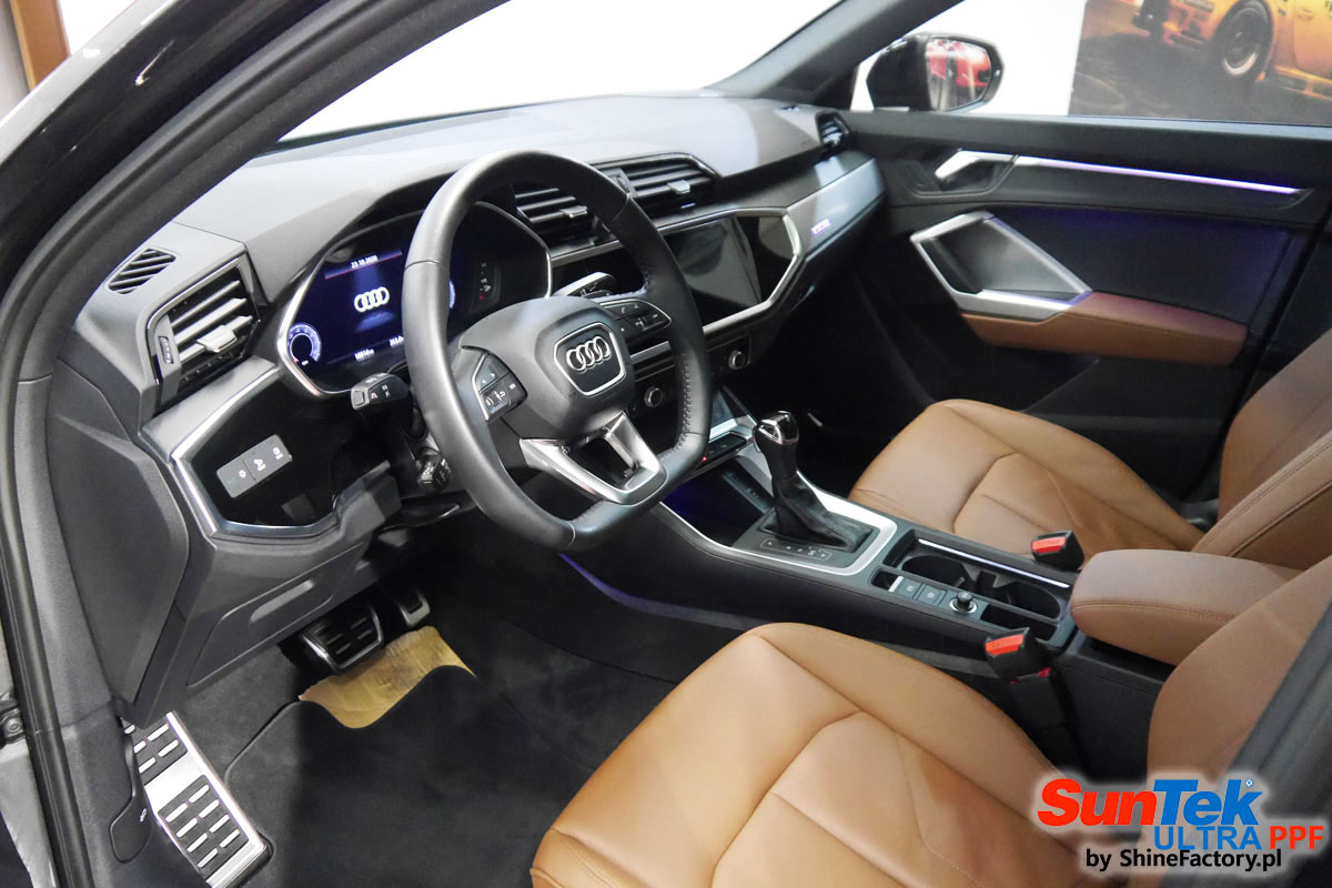 Zabezpieczenie frontów aut bezbarwnymi foliami ochronnymi staje się powoli standardem, coraz częściej także zabezpieczane w ten sposób są auta w całości co daje do tego czasu nieosiągalne perfekcyjne zabezpieczenie i efekt wizualny. Tym razem mieliśmy przyjemność zająć się Audi Q3. Decyzja wz. z zabezpieczeniem padła na bezkompromisowe połączanie znakomitych bezbarwnych folii ochronnych SunTek Ultra PPF z 10 letnią gwarancją oraz pakietu powłok ceramicznych. Standardowo prace zaczęliśmy od bardzo dokładnego oczyszczenia nadwozia z wszelkich naleciałości. Kolejno zajęliśmy się inspekcją lakieru i skorygowaniem oraz doprowadzeniem go do możliwej perfekcji z defektów posalonowych / potransportowych. Po przygotowaniu przeszliśmy do zabezpieczenia auta, najpierw aplikując bezbarwne folie ochronne. Folie zazwyczaj aplikuje się na najbardziej narażone el. auta jak przód, tym razem zdecydowaliśmy się praktycznie całe auto pokryć najlepszymi na świecie regeneracyjnymi foliami SunTek Ultra aby uzyskać 100% ochronę lakieru, który będzie całkowicie izolowany od środowiska zewnętrznego i nic nie będzie wstanie go uszkodzić. Po aplikacji folii przeszliśmy do zabezpieczania wszelkich el. auta powłokami, zaaplikowaliśmy pakiet powłok na całe auto, folie, szyby (Gtechniq G1), felgi (DLUX), elementy nielakierowane, a także całe wnętrze wraz z zaimpregnowaniem delikatnych skór. Po kilkudziesięciu godzinach pracy Audi nabrało perfekcyjnego wyglądu, połysku oraz co najważniejsze najmocniejszej praktycznie pancernej ochrony na lata. Zapraszamy do szerokiej fotorelacji!