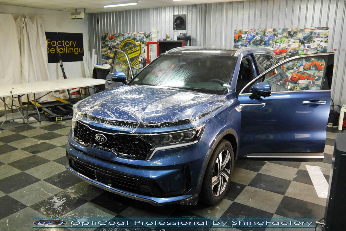 Połączenie bezbarwnych samo-regeneracyjnych folii oraz powłok ceramicznych staje się powoli standardem w idealnym zabezpieczeniu nowego auta. Tym razem mieliśmy przyjemność zająć się nową KIA Sorento. Auto zostało przez nas maksymalnie zabezpieczone przed wszystkimi możliwymi uszkodzeniami. Wykorzystane do tego zostały najlepsze na rynku bezbarwne folie ochronne SunTek Ultra PPF oraz natryskowa ceramika OptiCoat PRO. Oczywiście prace rozpoczęliśmy od dokładnego oczyszczenia całego nadwozia z naleciałości oraz delikatnej korekty lakieru w celu usunięcia potransporotwych i posalonowych niedoskonałości. Następnie przystąpiliśmy do aplikacji bezbarwnych folii ochronnych na najbardziej narażone na mocne uszkodzenia el. auta, oczywiście zdecydowaliśmy się jak zawsze wybrać produkt bezkonkurencyjny i nowoczesny na rynku, czyli folie regeneracyjne SunTek Ultra PPF. Po aplikacji folii przeszliśmy do zabezpieczania wszelkich el. auta powłokami, zaaplikowaliśmy w natryskowy sposób grubą warstwę powłoki 9H+ Optimum OptiCoat Professional potwierdzoną testami TUV, pokrywając ją dla maksymalnego efektu wizualnego powłoką GlossCoat, która na końcu została utwardzona w odpowiedniej temp. lampami IR. Oczywiście zajęliśmy się, także zabezpieczeniem pakietem powłok wszelkich innych elementów jak szyby (Gtechniq G1), felgi (DLUX), lampy czy elementy nielakierowane, a także całe wnętrze wraz z zaimpregnowaniem delikatnych skór. Po kilkudziesięciu godzinach pracy KIA nabrała perfekcyjnego wyglądu, połysku oraz co najważniejsze najmocniejszej praktycznie pancernej ochrony na lata. Zapraszamy do szerokiej fotorelacji! Oklejone zostały przednie elementy auta głównie w celu ochrony przed mocnymi mechanicznymi uszkodzeniami jak np. odpryski od kamieni, piaskowanie od żwiru drogowego, mocniejszymi rysami, obiciami czy nawet drobnymi obcierkami parkingowymi. Dokładnie oklejone zostały: