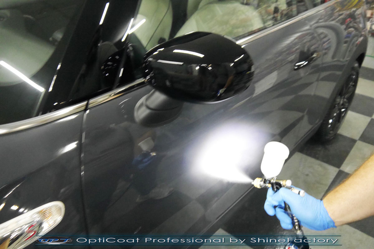 Zapraszamy Państwa do fotorelacji z naszego najczęściej wykonywanego pakietu prac czyli zabezpieczenia nadwozia pakietem powłok ceramicznych. Mini, które zostało nam oddane prosto po wyjeździe z salonu przeszło nasz pakiet prac dla nowego auta. Prace nad nadwoziem rozpoczęliśmy od dokładnego oczyszczenia i odtłuszczenia, następnie lakier przeszedł delikatną korektę w celu usunięcia po salonowych niedoskonałości. Po tych czynnościach przeszliśmy do aplikacji powłok na wszelkie elementy jak lakier, szyby (bezapelacyjnie najlepszą powłoką Gtechniq G1), felgi (pancerny CQ DLUX), detale itp itd. Najważniejsze, na sam lakier zaaplikowaliśmy maksymalnie grubą natryskową warstwę kompozytu ceramicznego (100% powłoki na aucie) opartego na SiC- OptiCoat Professional połączoną z powłoką GlossCoat, która zapewni ochronę, zminimalizowane brudzenie oraz ułatwione do maksimum mycie. Zapraszamy do szerokiej fotorelacji!