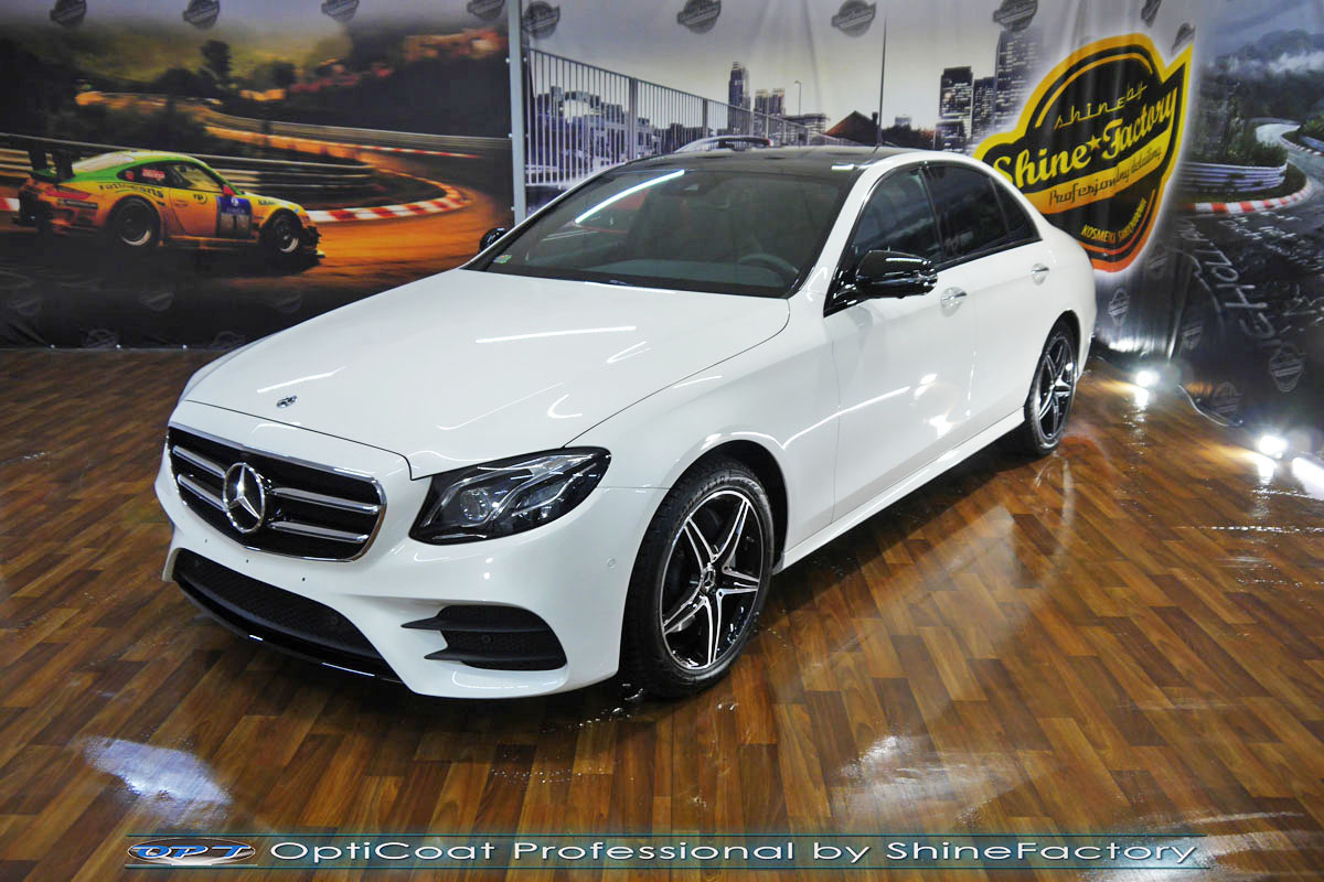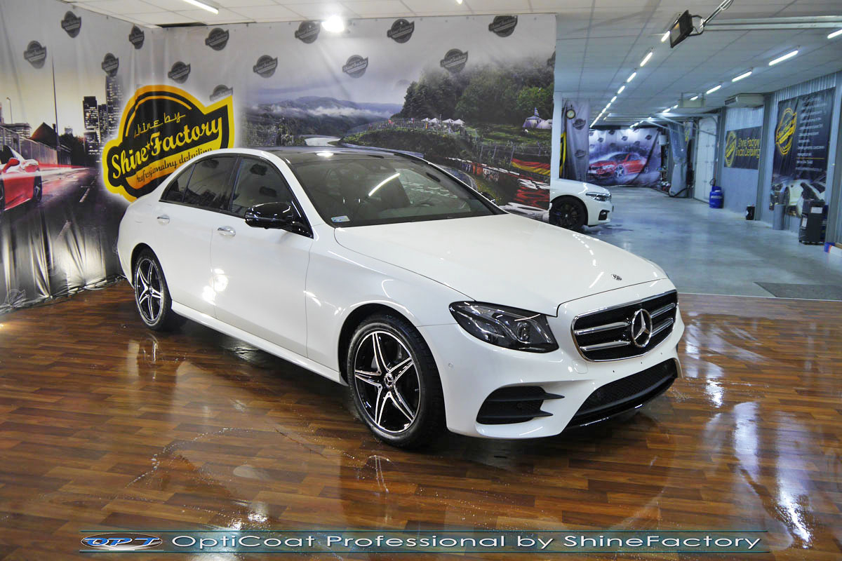Zapraszamy Państwa do fotorelacji z prac nad Mercedesem klasy E w perłowym białym lakierze. Auto zostało nam oddane niedługo po wyjeździe z salonu w celu jak najgrubszego i jak najmocniejszego możliwego zabezpieczenia pakietem powłok ceramicznych. Mercedes przeszedł nasz szeroki pakiet prac dla nowego auta więc prócz zabezpieczenia kompletem ceramiki nadwozia, zdjęliśmy z auta koła w celu dokładnego detailingu nadkoli, wnętrza felg oraz zacisków hamulcowych. Całe wnętrze zostało zaimpregnowane kosmetykami najwyższej ligi, ze szczególną uwagą na impregnacje el. skórzanych. Prace nad nadwoziem rozpoczęliśmy od dokładnego oczyszczenia i odtłuszczenia, następnie lakier przeszedł delikatną korektę w celu uzyskania perfekcyjnego efektu finalnego. Po tych czynnościach przeszliśmy do aplikacji powłok na wszelkie elementy jak lakier, szyby (bezapelacyjnie najlepszą powłoką Gtechniq G1), lampy, felgi (pancerny CQ DLUX), detale itp itd. Najważniejsze, na sam lakier zaaplikowaliśmy maksymalnie grubą natryskową warstwę kompozytu ceramicznego (100% powłoki na aucie) opartego na SiC- OptiCoat Professional połączoną z powłoką GlossCoat, która zapewni ochronę, zminimalizowane brudzenie oraz ułatwione do maksimum mycie. Nie pominęliśmy zajęcia się komorą silnika aby na długi czas prezentowała się świeżo i schludnie. Finalnie całe auto zostało wygrzane lampami IR w odpowiedniej temperaturze w celu utwardzenia. Zapraszamy do szerokiej fotorelacji!