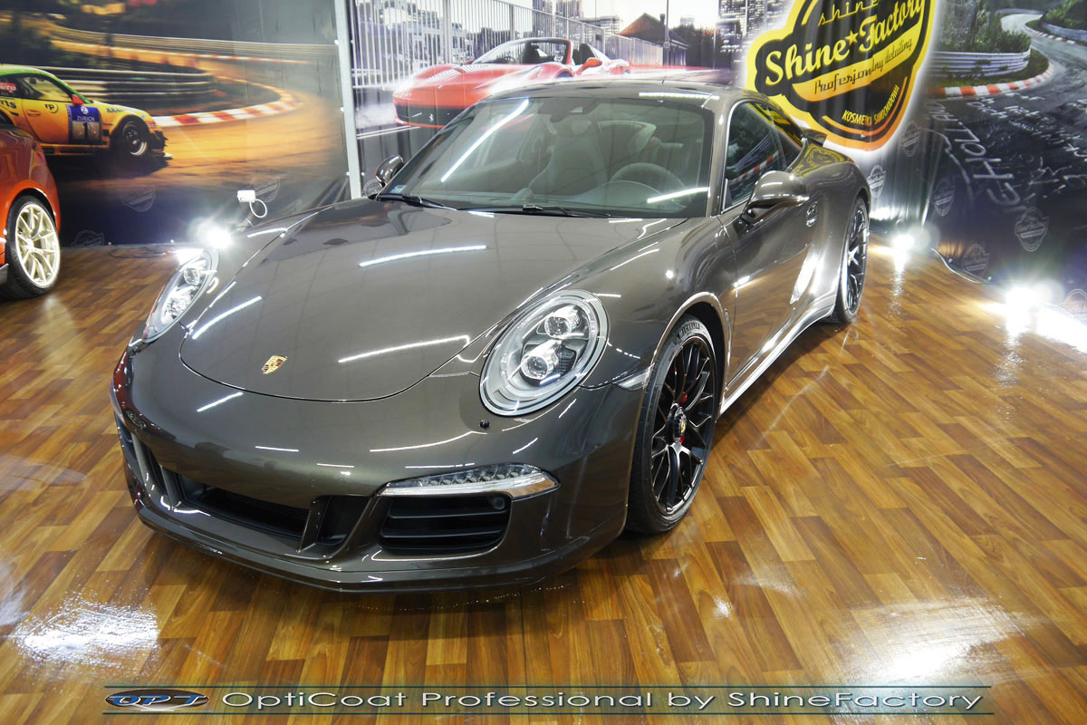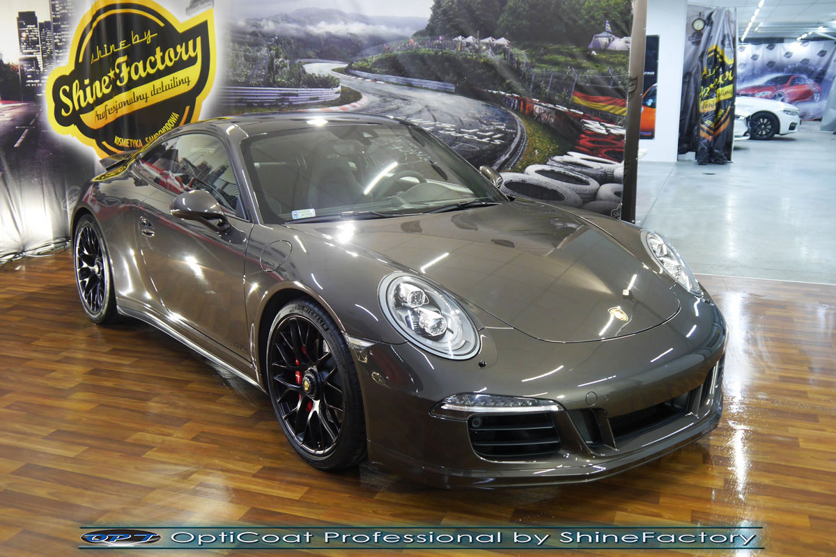 Tym razem chcemy przedstawić fotorelację z prac nad Porsche 911 GTS o które bardzo dba właściciel co jakiś czas nam je powierzając. Naszym zadaniem było mocne odświeżenie, pokrycie powłoką ceramiczną oraz aplikacja folii ochronnej na przedni zderzak aby Porsche ponownie prezentowało się perfekcyjnie i było jak najlepiej zabezpieczone na zimowe warunki użytkowania. Zaczęliśmy od oczyszczenia kół oraz dogłębnego oczyszczenia nadwozia. Następnie przystąpiliśmy do korekty zniszczonego lakieru, odświeżyliśmy go przez usunięcie zmatowień, mikrorys, lekkich obcierek, wżerów itp, po kilku dniach prac 911 było gotowe do zabezpieczanie powłoką ceramiczną. Finalnie zdecydowaliśmy się zabezpieczyć każdy element (lakier, felgi, szyby itp) najlepszymi powłokami ceramicznymi/kwarcowymi z rynku, sam lakier testowaną w laboratoryjny sposób przez TUV powłoką ceramiczną OptiCoat Professional/GlossCoat w innowacyjny natryskowy sposób co zapewnia maksymalny połysk i grubą ochronę lakieru na bardzo długi czas. Zderzak przedni po wcześniejszym polakierowaniu (spora ilość odprysków) został pokryty gruba folią bezbarwną w celu ochronny przed piaskowaniem i obiciami. Nie pominęliśmy kompleksowego detailingu wnętrza auta, gdzie skupiliśmy się na czyszczeniu i impregnacji skór oraz alkantary. Dzięki detailingowi oraz finalnemu pokryciu ceramiką i folią PPF jest idealnie chronione oraz przez długi czas będzie cieszyło oko idealną prezentacją lakieru i maksymalnym blaskiem. Zapraszamy do szerokiej fotorelacji i zdjęć efektu końcowego!