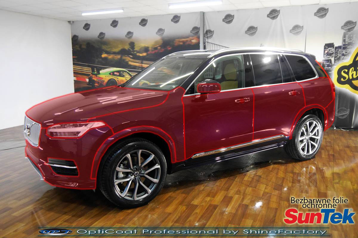 Połączenie bezbarwnych samo-regeneracyjnych folii oraz powłok ceramicznych staje się powoli standardem w idealnym zabezpieczeniu nowego auta. Tym razem mieliśmy przyjemność zająć się nowym Volvo XC90, które trafiło do nas po symbolicznym przebiegu. Auto zostało maksymalnie zabezpieczone przed wszystkimi możliwymi uszkodzeniami. Wykorzystane do tego zostały najlepsze na rynku bezbarwne folie ochronne SunTek Ultra PPF oraz natryskowa ceramika OptiCoat PRO. Oczywiście prace rozpoczęliśmy od dokładnego oczyszczenia całego nadwozia z naleciałości oraz delikatnej korekty lakieru. Następnie przystąpiliśmy do aplikacji bezbarwnych folii ochronnych na najbardziej narażone na mocne uszkodzenia el. auta, oczywiście zdecydowaliśmy się jak zawsze wybrać produkt bezkonkurencyjny i nowoczesny na rynku, czyli folie regeneracyjne SunTek Ultra PPF. Po aplikacji folii przeszliśmy do zabezpieczania wszelkich el. auta powłokami, zaaplikowaliśmy w natryskowy sposób grubą warstwę powłoki 9H+ Optimum OptiCoat Professional potwierdzoną testami TUV, pokrywając ją dla maksymalnego efektu wizualnego powłoką GlossCoat, która na końcu została utwardzona w odpowiedniej temp. lampami IR. Oczywiście zajęliśmy się, także zabezpieczeniem pakietem powłok wszelkich innych elementów jak szyby (Gtechniq G1), felgi (DLUX), lampy czy elementy nielakierowane . Nie pominęliśmy zajęcia się wnętrzem aby zabezpieczyć je w każdym detalu różnymi kosmetykami skupiając się na impregnacji delikatnych skór. Po kilkudziesięciu godzinach pracy Volvo nabrało perfekcyjnego wyglądu, połysku oraz co najważniejsze najmocniejszej praktycznie pancernej ochrony na lata. Zapraszamy do szerokiej fotorelacji!