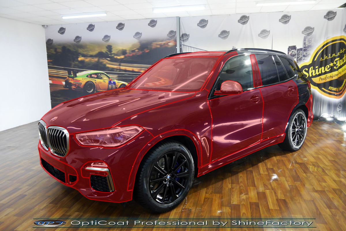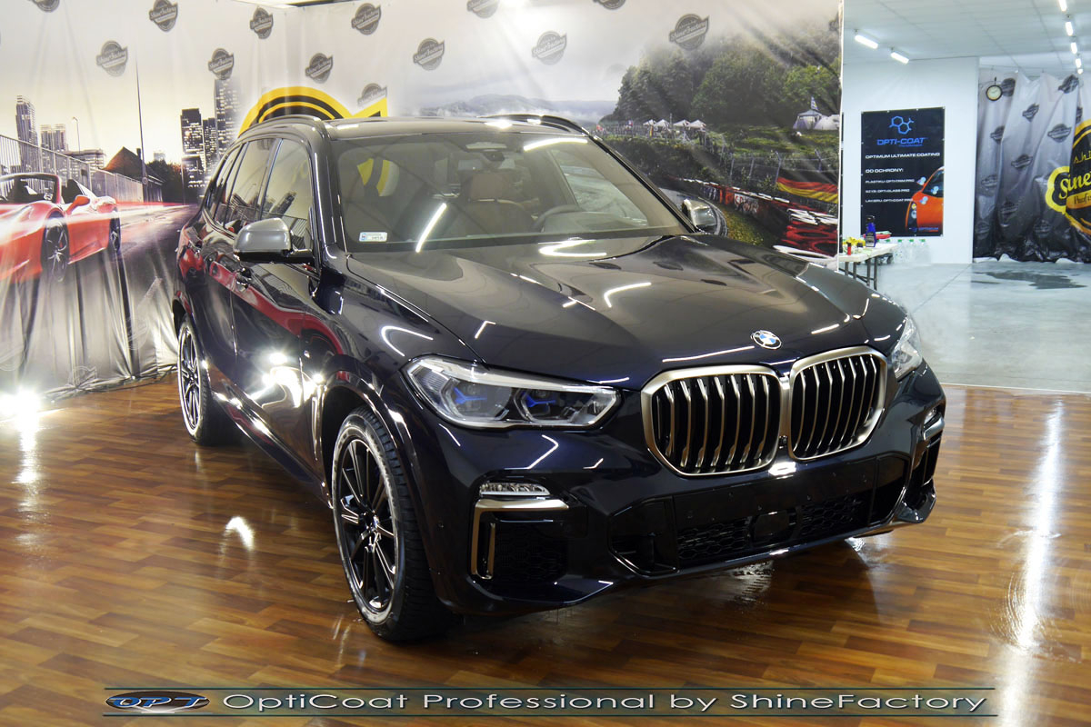 Połączenie bezbarwnych samo-regeneracyjnych folii oraz powłok ceramicznych staje się powoli standardem w idealnym zabezpieczeniu nowego auta. Tym razem mieliśmy przyjemność zająć się najnowszym modelem BMW X5, które trafiło do nas po symbolicznym przebiegu. Auto zostało maksymalnie zabezpieczone przed wszystkimi możliwymi uszkodzeniami. Wykorzystane do tego zostały najlepsze na rynku bezbarwne folie ochronne SunTek Ultra PPF oraz natryskowa ceramika OptiCoat PRO. Oczywiście prace rozpoczęliśmy od dokładnego oczyszczenia całego nadwozia z naleciałości. Musieliśmy już niestety przeprowadzić mocniejszą korektę w celu usunięcia wżerów w lakierze które pojawiły się na większości elementów. Następnie przystąpiliśmy do aplikacji bezbarwnych folii ochronnych na najbardziej narażone na mocne uszkodzenia el. auta, oczywiście zdecydowaliśmy się jak zawsze wybrać produkt bezkonkurencyjny i nowoczesny na rynku, czyli folie regeneracyjne SunTek Ultra PPF. Po aplikacji folii przeszliśmy do zabezpieczania wszelkich el. auta powłokami, zaaplikowaliśmy w natryskowy sposób grubą warstwę powłoki 9H+ Optimum OptiCoat Professional potwierdzoną testami TUV, pokrywając ją dla maksymalnego efektu wizualnego powłoką GlossCoat, która na końcu została utwardzona w odpowiedniej temp. lampami IR. Oczywiście zajęliśmy się, także zabezpieczeniem pakietem powłok wszelkich innych elementów jak szyby (Gtechniq G1), felgi (DLUX), lampy czy elementy nielakierowane . Nie pominęliśmy zajęcia się wnętrzem aby zabezpieczyć je w każdym detalu różnymi kosmetykami skupiając się na impregnacji delikatnych skór. Po kilkudziesięciu godzinach pracy BMW nabrało perfekcyjnego wyglądu, połysku oraz co najważniejsze najmocniejszej praktycznie pancernej ochrony na lata. Zapraszamy do szerokiej fotorelacji! Oklejone zostały przednie elementy, drzwi i tyła auta głównie w celu ochrony przed mocnymi mechanicznymi uszkodzeniami jak np. odpryski od kamieni, piaskowanie od żwiru drogowego, mocniejszymi rysami, obiciami czy nawet drobnymi obcierkami parkingowymi. Dokładnie oklejone zostały: - Zderzak przedni - Pełna maska - Lusterka - Błotniki przednie - Sierpy błotników przednich - Szyba czołowa - Lampy - Progi - Wnęki drzwi - Słupki A - Słupki B - Nadszybie - 4x Drzwi - Zderzak tylny wraz z dyfuzorem Zapraszamy do zdjęć z prac i efektu końcowego, jak widać folia posiada bardzo duży połysk i przejrzystość dzięki czemu jest praktycznie nie zauważalna.