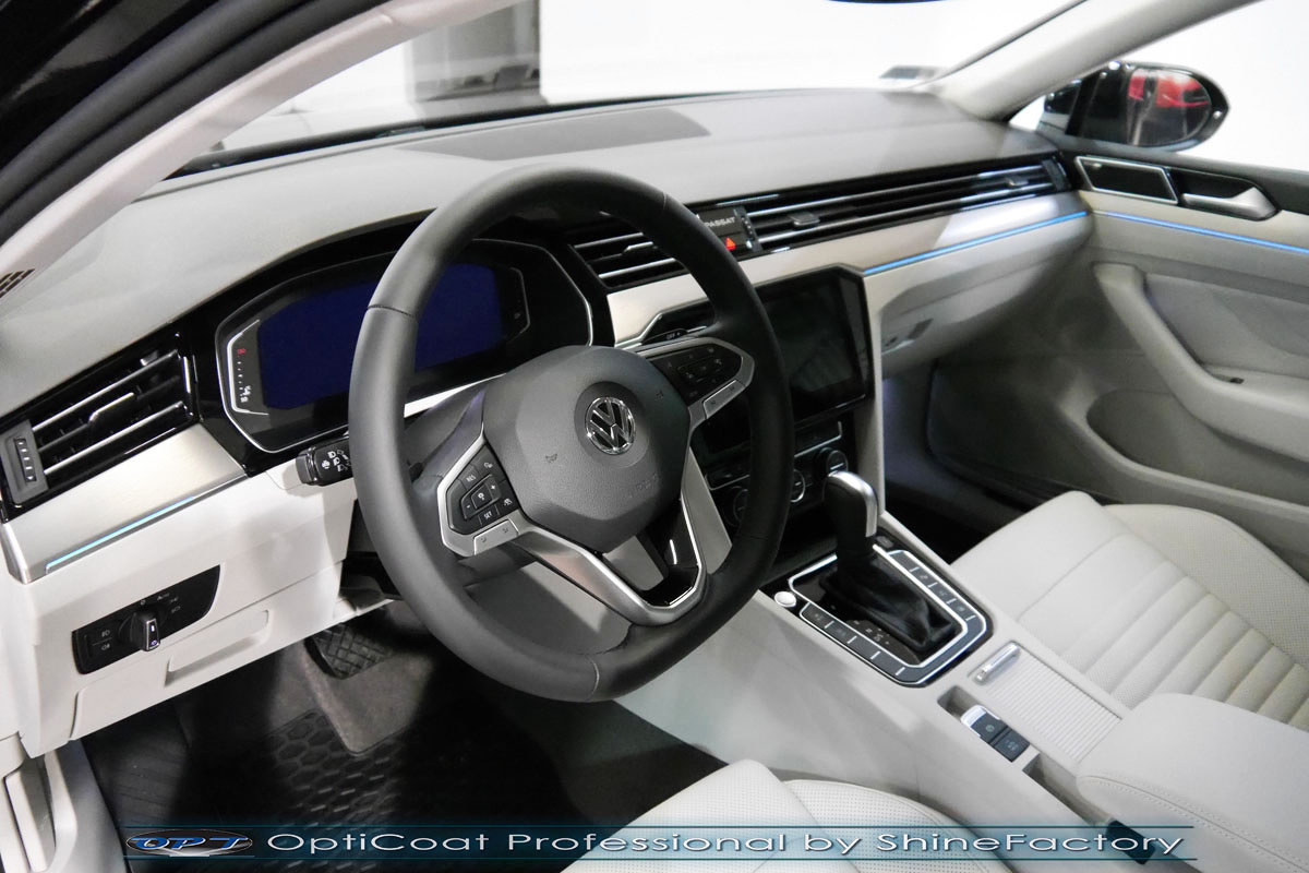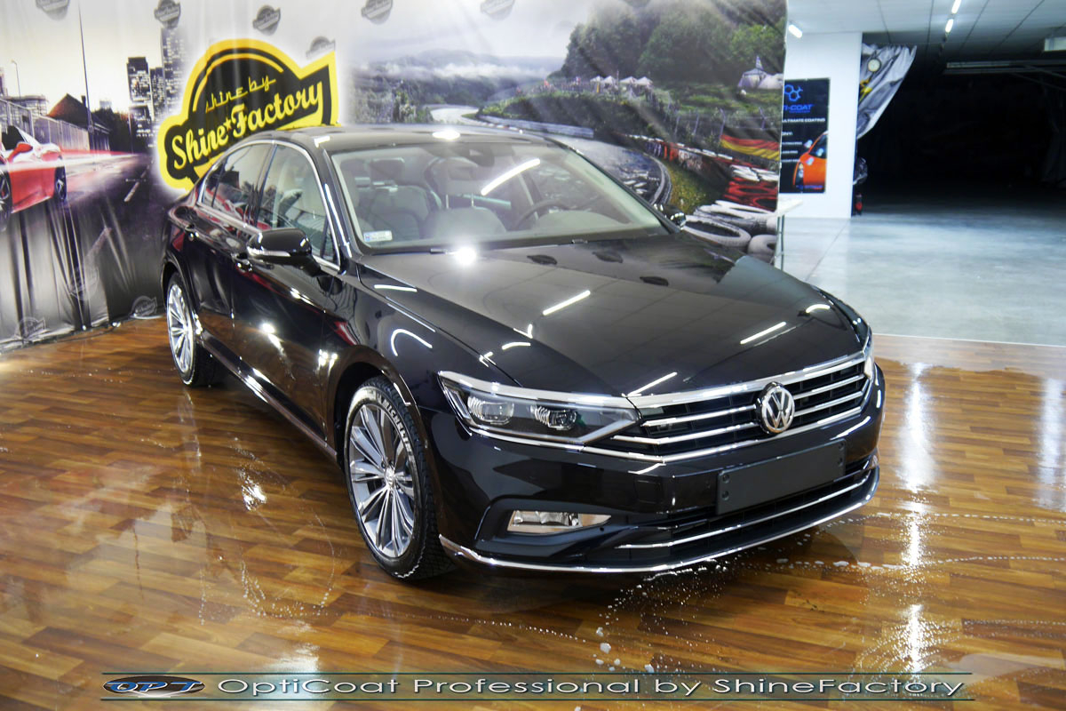 Zapraszamy Państwa do fotorelacji z naszego najczęściej wykonywanego pakietu prac czyli zabezpieczenia nadwozia oraz wnętrza pakietem powłok ceramicznych. VW Passat, który został nam oddany prosto po wyjeździe z salonu przeszedł nasz szeroki pakiet prac, zaczęliśmy od dokładnego detailingu kół oraz oczyszczenia nadwozia. Całe wnętrze zostało oczyszczone i zaimpregnowane kosmetykami najwyższej ligi, z naciskiem na el. plastikowe, delikatne skóry i el. z alkantary. Prace nad nadwoziem rozpoczęliśmy od dokładnego oczyszczenia i odtłuszczenia, następnie lakier przeszedł delikatną korektę w celu usunięcia po salonowych niedoskonałości. Po tych czynnościach przeszliśmy do aplikacji powłok na wszelkie elementy jak lakier, szyby (bezapelacyjnie najlepszą powłoką Gtechniq G1), felgi (pancerny CQ DLUX), detale itp itd. Najważniejsze, na sam lakier zaaplikowaliśmy maksymalnie grubą natryskową warstwę kompozytu ceramicznego (100% powłoki na aucie) opartego na SiC- OptiCoat Professional połączoną z powłoką GlossCoat, która zapewni ochronę, zminimalizowane brudzenie oraz ułatwione do maksimum mycie. Dodatkowo wnęki klamek, ranty drzwi oraz próg bagażnika zostały pokryte grubą folią ochronną. Zapraszamy do szerokiej fotorelacji!