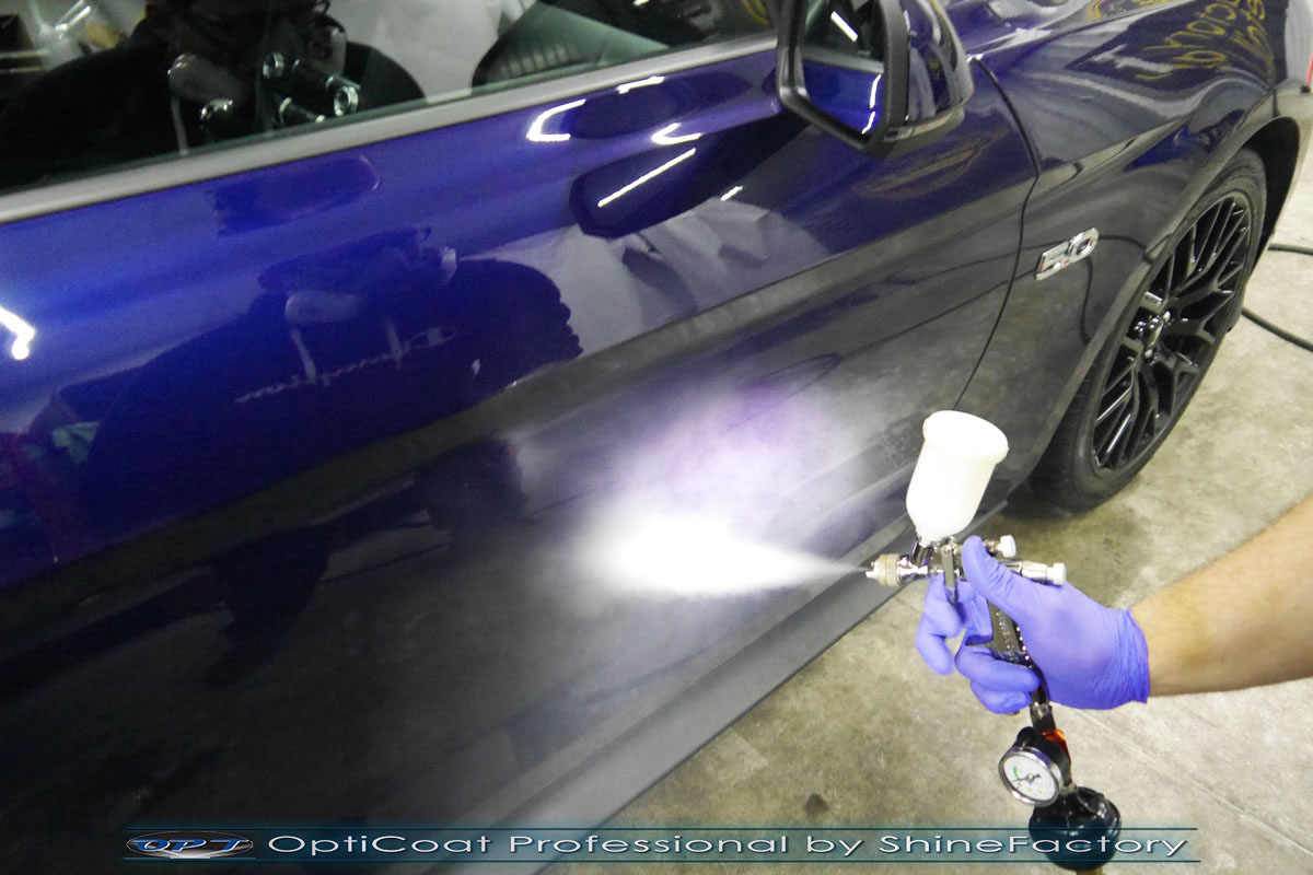 Zapraszamy Państwa do fotorelacji z prac nad Ford Mustang, który został nam oddany prosto po wyjeździe z salonu w celu jak najgrubszego i jak najmocniejszego możliwego zabezpieczenia pakietem powłok ceramicznych. Mustang przeszedł nasz szeroki pakiet prac, zaczęliśmy od dokładnego detailingu kół oraz oczyszczenia nadwozia. Całe wnętrze zostało oczyszczone i zaimpregnowane kosmetykami najwyższej ligi, z naciskiem na el. plastikowe, delikatne skóry i el. z alkantary. Prace nad nadwoziem rozpoczęliśmy od dokładnego oczyszczenia i odtłuszczenia, następnie lakier przeszedł delikatną korektę w celu usunięcia po salonowych niedoskonałości. Po tych czynnościach przeszliśmy do aplikacji powłok na wszelkie elementy jak lakier, szyby (bezapelacyjnie najlepszą powłoką Gtechniq G1), felgi (pancerny CQ DLUX), detale itp itd. Najważniejsze, na sam lakier zaaplikowaliśmy maksymalnie grubą natryskową warstwę kompozytu ceramicznego (100% powłoki na aucie) opartego na SiC- OptiCoat Professional połączoną z powłoką GlossCoat, która zapewni ochronę, zminimalizowane brudzenie oraz ułatwione do maksimum mycie. Dodatkowo wnęki drzwi, ranty drzwi i wnęki klamek zostały zabezpieczone grubą folią bezbarwną. Zapraszamy do szerokiej fotorelacji!