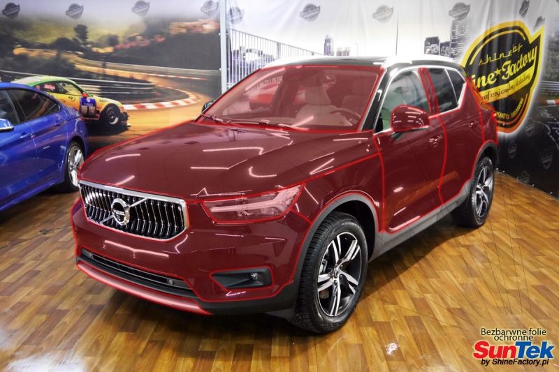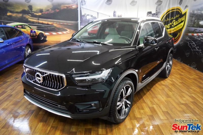 Zabezpieczenie frontów nowych aut bezbarwnymi foliami ochronnymi staje się powoli standardem, coraz częściej także zabezpieczane w ten sposób są auta w całości co daje do tego czasu nieosiągalne perfekcyjne zabezpieczenie i efekt wizualny. Tym razem mieliśmy przyjemność zająć się Volvo XC40. Volvo zostało nam powierzone praktycznie wprost po opuszczeniu salonu w celu najlepszego na świecie zabezpieczenia całego auta. Decyzja padła oczywiście na połączanie znakomitych bezbarwnych folii ochronnych SunTek Ultra PPF z 10 letnią gwarancją oraz pakietu powłok ceramicznych. Standardowo prace zaczęliśmy od bardzo dokładnego oczyszczenia nadwozia z wszelkich naleciałości. Następnie po inspekcji usunęliśmy wszelkie niedoskonałości lakieru. Po przygotowaniu przeszliśmy do zabezpieczenia auta, najpierw aplikując bezbarwne folie ochronne. Folie zazwyczaj aplikuje się na najbardziej narażone el. auta jak przód, tym razem zdecydowaliśmy się praktycznie całe auto pokryć najlepszymi na świecie regeneracyjnymi foliami SunTek Ultra aby uzyskać 100% ochronę lakieru, który będzie całkowicie izolowany od środowiska zewnętrznego i nic nie będzie wstanie go uszkodzić. Po aplikacji folii przeszliśmy do zabezpieczania wszelkich el. auta powłokami, zaaplikowaliśmy pakiet powłok na całe auto, folie, szyby (Gtechniq G1), felgi (DLUX), elementy nielakierowane. Nie pominęliśmy detailingu wnętrzem aby zabezpieczyć je w każdym detalu różnymi kosmetykami najwyższej klasy. Po kilkudziesięciu godzinach pracy Volvo nabrało perfekcyjnego wyglądu, połysku oraz co najważniejsze najmocniejszej praktycznie pancernej ochrony na lata. Zapraszamy do szerokiej fotorelacji! Oklejone zostały wszystkie elementy auta w celu ochrony przed wszelkimi uszkodzeniami jak np. odpryski od kamieni, piaskowanie od żwiru drogowego, mocniejszymi rysami czy nawet drobnymi obcierkami parkingowymi. Dokładnie oklejone zostały: Szyba czołowa Zderzak przedni Zderzak tylny Maska Klosze lamp Błotniki przednie Błotniki tylne Drzwi przednie Drzwi tylne Lusterka Klapa tylna Zapraszamy do zdjęć z prac i efekt końcowego, jak widać folia posiada bardzo duży połysk i przejrzystość dzięki czemu jest praktycznie nie zauważalna.
