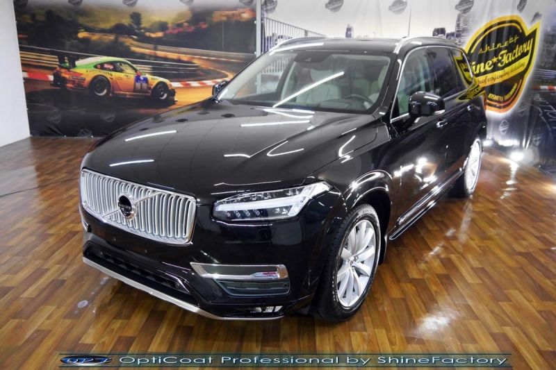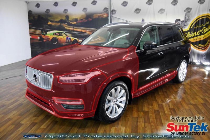 Połączenie bezbarwnych samo-regeneracyjnych folii oraz powłok ceramicznych staje się powoli standardem w idealnym zabezpieczeniu nowego auta. Tym razem mieliśmy przyjemność zająć się Volvo XC90 z niewielkim przebiegiem, kiedy właściciel zauważył jak delikatne są wszystkie el. jego auta i jak szybko niszczeją. Auto zostało maksymalnie odświeżone oraz zabezpieczone przed wszystkimi możliwymi uszkodzeniami. Wykorzystane do tego zostały najlepsze na rynku bezbarwne folie ochronne SunTek Ultra PPF oraz natryskowa ceramika OptiCoat PRO. Oczywiście prace rozpoczęliśmy od dokładnego oczyszczenia całego nadwozia z naleciałości, zdjęliśmy z auta koła. Przeprowadziliśmy delikatną korektę aby usunąć po fabryczne/transportowe niedoskonałości. Następnie przystąpiliśmy do aplikacji bezbarwnych folii ochronnych na najbardziej narażone na mocne uszkodzenia el. auta, oczywiście zdecydowaliśmy się jak zawsze wybrać produkt bezkonkurencyjny i nowoczesny na rynku, czyli folie regeneracyjne SunTek Ultra PPF. Po aplikacji folii przeszliśmy do zabezpieczania wszelkich el. auta powłokami, zaaplikowaliśmy w natryskowy sposób grubą warstwę powłoki 9H+ Optimum OptiCoat Professional potwierdzoną testami TUV, pokrywając ją dla maksymalnego efektu wizualnego powłoką GlossCoat, która na końcu została utwardzona w odpowiedniej temp. lampami IR. Oczywiście zajęliśmy się, także zabezpieczeniem pakietem powłok wszelkich innych elementów jak szyby (Gtechniq G1), felgi (DLUX), lampy czy elementy nielakierowane . Nie pominęliśmy zajęcia się wnętrzem aby zabezpieczyć je w każdym detalu różnymi kosmetykami skupiając się na impregnacji delikatnych skór. Po kilkudziesięciu godzinach pracy Volvo nabrało perfekcyjnego wyglądu, połysku oraz co najważniejsze najmocniejszej praktycznie pancernej ochrony na lata. Zapraszamy do szerokiej fotorelacji! Oklejone zostały przednie elementy głównie w celu ochrony przed mocnymi mechanicznymi uszkodzeniami jak np. odpryski od kamieni, piaskowanie od żwiru drogowego, mocniejszymi rysami czy nawet drobnymi obcierkami parkingowymi. Dokładnie oklejone zostały: Zderzak przedni Pełna maska Pełne błotniki Lampy Chromy w przednim zderzaku Progi Chromy w progach Półka bagażnika Chromy tylnego zderzaka Wnęki pod klamkami Zapraszamy do zdjęć z prac i efekt końcowego, jak widać folia posiada bardzo duży połysk i przejrzystość dzięki czemu jest praktycznie nie zauważalna.