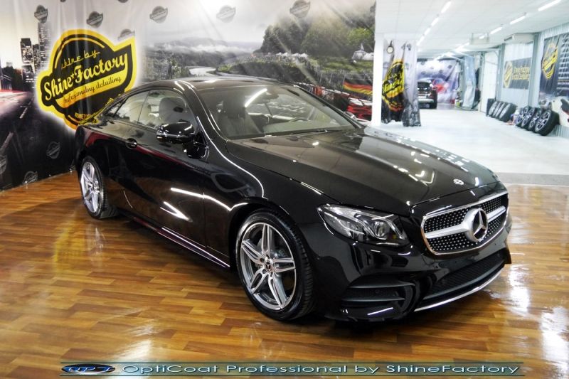 Zapraszamy Państwa do fotorelacji z prac nad Mercedesem E coupe. Auto zostało nam oddane z niewielkim przebiegiem w celu odświeżenia oraz jak najgrubszego i jak najmocniejszego możliwego zabezpieczenia pakietem powłok ceramicznych. Mercedes przeszedł nasz szeroki pakiet prac więc prócz zabezpieczenia kompletem ceramiki nadwozia, zdjęliśmy z auta koła w celu dokładnego detailingu nadkoli, wnętrza felg oraz zacisków hamulcowych. Całe wnętrze zostało zaimpregnowane kosmetykami najwyższej ligi z naciskiem na zabezpieczenie skór, el. plastikowych oraz materiałowych. Prace nad nadwoziem rozpoczęliśmy od dokładnego oczyszczenia i odtłuszczenia, następnie lakier który już posiadał wyraźne zmatowienie został mocno odświeżony w celu uzyskania perfekcyjnego efektu finalnego. Po tych czynnościach przeszliśmy do aplikacji powłok na wszelkie elementy jak lakier, szyby (bezapelacyjnie najlepszą powłoką Gtechniq G1), lampy, felgi (pancerny CQ DLUX), detale itp itd. Najważniejsze, na sam lakier zaaplikowaliśmy maksymalnie grubą natryskową warstwę kompozytu ceramicznego (100% powłoki na aucie) opartego na SiC- OptiCoat Professional połączoną z powłoką GlossCoat, która zapewni ochronę, zminimalizowane brudzenie oraz ułatwione do maksimum mycie. Nie pominęliśmy zajęcia się komorą silnika aby na długi czas prezentowała się świeżo i schludnie. Finalnie całe auto zostało wygrzane lampami IR w odpowiedniej temperaturze w celu utwardzenia. Dodatkowo lampy i lusterka zostały zabezpieczone grubą folią ochronną a srebrne listewki i klamki oklejone na czarne. Zapraszamy do szerokiej fotorelacji!