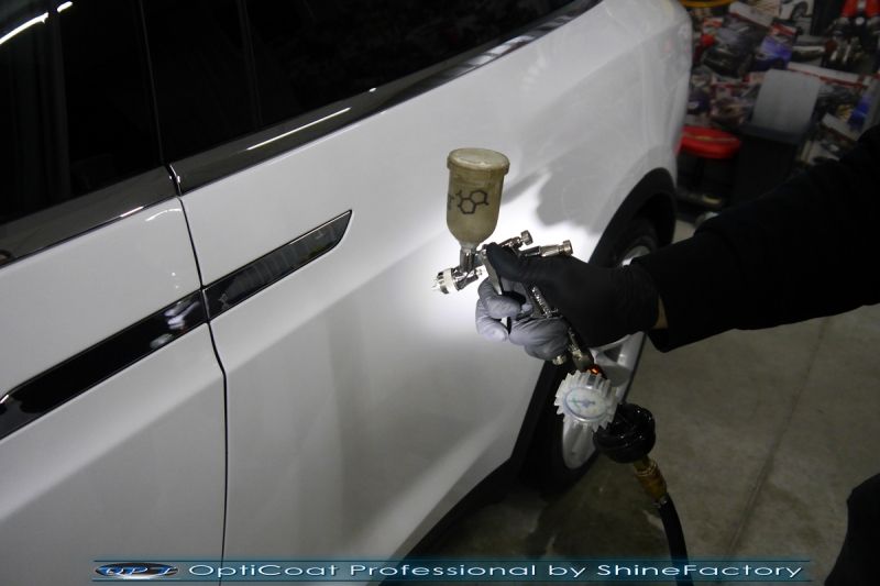 677. Tesla X & natryskowa wielowarstwowa, trzyskładnikowa powłoka ceramiczna OptiCoat PRO+GlossCoat!
