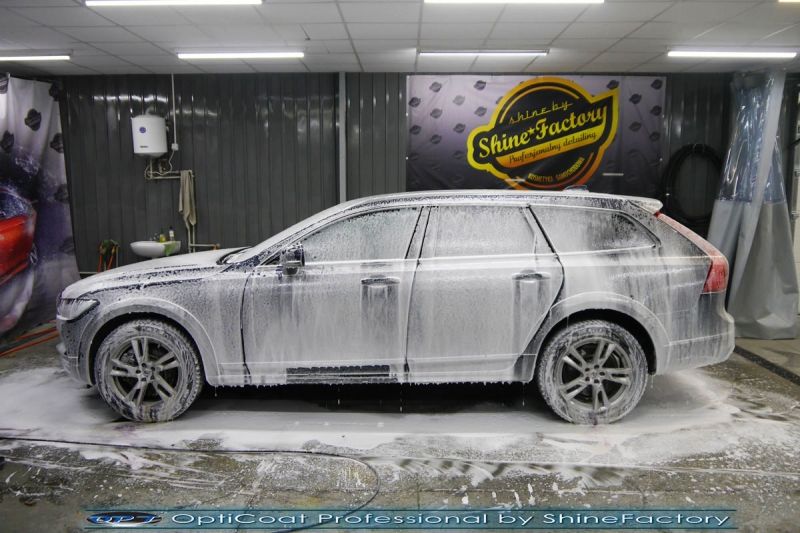 Zapraszamy Państwa do fotorelacji z prac nad Volvo V90 w wersji Cross Country. Auto zostało nam powierzone wprost po wyjeździe z salonu w celu jak najgrubszego i jak najmocniejszego możliwego zabezpieczenia pakietem powłok ceramicznych. Volvo przeszło nasz szeroki pakiet zabezpieczenia kompletem ceramiki nadwozia. Prace rozpoczęliśmy oczywiście od dokładnego oczyszczenia i odtłuszczenia, następnie lakier przeszedł delikatną korektę w celu uzyskania perfekcyjnego efektu finalnego. Po tych czynnościach przeszliśmy do aplikacji powłok na wszelkie elementy jak lakier, szyby (bezapelacyjnie najlepszą powłoką Gtechniq G1), lampy, felgi (pancerny CQ DLUX) oraz inne detale auta. Najważniejsze, na sam lakier zaaplikowaliśmy maksymalnie grubą natryskową warstwę kompozytu ceramicznego (100% powłoki na aucie) opartego na SiC- OptiCoat Professional połączoną z powłoką GlossCoat, która zapewni ochronę, zminimalizowane brudzenie oraz ułatwione do maksimum mycie. Zapraszamy do szerokiej fotorelacji!