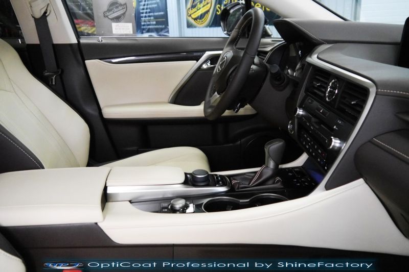 Zapraszamy Państwa do fotorelacji z prac nad Lexusem RX. Auto zostało nam oddane wprost po wyjeździe z salonu w celu jak najgrubszego i jak najmocniejszego możliwego zabezpieczenia pakietem powłok ceramicznych. Lexus przeszedł nasz szeroki pakiet prac dla nowego auta więc prócz zabezpieczenia kompletem ceramiki nadwozia, zdjęliśmy z auta koła w celu dokładnego detailingu nadkoli, wnętrza felg oraz zacisków hamulcowych. Całe wnętrze zostało zaimpregnowane kosmetykami najwyższej ligi z naciskiem na zabezpieczenie jasnych skór, el. plastikowych oraz materiałowych. Prace nad nadwoziem rozpoczęliśmy od dokładnego oczyszczenia i odtłuszczenia, następnie lakier przeszedł delikatną korektę w celu uzyskania perfekcyjnego efektu finalnego. Po tych czynnościach przeszliśmy do aplikacji powłok na wszelkie elementy jak lakier, szyby (bezapelacyjnie najlepszą powłoką Gtechniq G1), lampy, felgi (pancerny CQ DLUX), detale itp itd. Najważniejsze, na sam lakier zaaplikowaliśmy maksymalnie grubą natryskową warstwę kompozytu ceramicznego (100% powłoki na aucie) opartego na SiC- OptiCoat Professional połączoną z powłoką GlossCoat, która zapewni ochronę, zminimalizowane brudzenie oraz ułatwione do maksimum mycie. Nie pominęliśmy zajęcia się komorą silnika aby na długi czas prezentowała się świeżo i schludnie. Finalnie całe auto zostało wygrzane lampami IR w odpowiedniej temperaturze w celu utwardzenia. Zapraszamy do szerokiej fotorelacji! Dodatkowo najbardziej narażone na uszkodzenia detale zostały pokryte folią bezbarwną: Wnęki klamek, Ranty drzwi, Próg bagażnika.