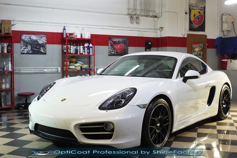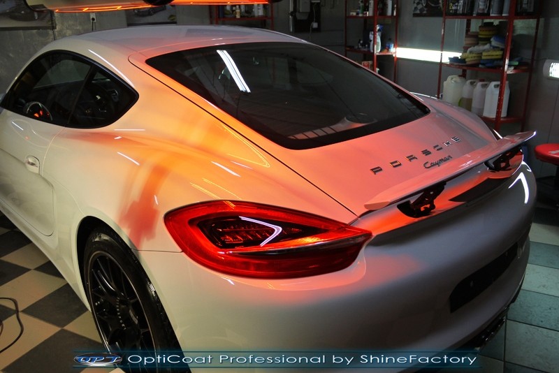 Witamy Was! Dziś chcemy przedstawić pełną fotorelację z prac nad Porsche Cayman. Auto trafiło do nas w celu przeprowadzenia maksymalnego pakietu detilingu oraz mocnego ceramicznego pakietu zabezpieczenia. Biały niemetaliczny lakier po kilku latach użytkowania, już zdecydowanie stracił połysk i nieskazitelną biel. Prace rozpoczęliśmy od dokładnego oczyszczenia nadwozia z mocno wgryzionych zabrudzeń i osadów, oraz oczywiście przeprowadziliśmy pełną korektę lakieru aby usunąć niedoskonałości czyli zmatowiały lakier oraz głębsze i płytsze ryski. Po kilku dniach prac nabrał idealnego wyglądu oraz był gotowy do zabezpieczanie powłoką ceramiczną. Finalnie zastosowaliśmy wyjątkową powłokę 9H++ Optimum OptiCoat Professional potwierdzoną testami TUV, która na końcu została utwardzona w odpowiedniej temp. lampami IR. Oczywiście zajęliśmy się także zabezpieczeniem pakietem powłok wszelkich innych elementów jak szyby, felgi, elementy nielakierowane czy klosze lamp, oczywiście po przygotowaniu i możliwej renowacji. Nie zapomnieliśmy także o detailingu wszelkich elementów wnętrza, głównie skupiając uwagę na czyszczeniu i impregnacji skór oraz nadkoli czy wnętrza felg. Po kilkudziesięciu godzinach pracy kilku osób auto nabrało perfekcyjnego wyglądu, krystalicznej bieli oraz ceramicznej ochrony na bardzo długi czas. Zapraszamy do bardzo szerokiej fotorelacji!