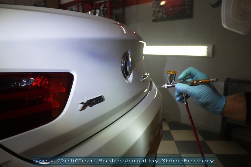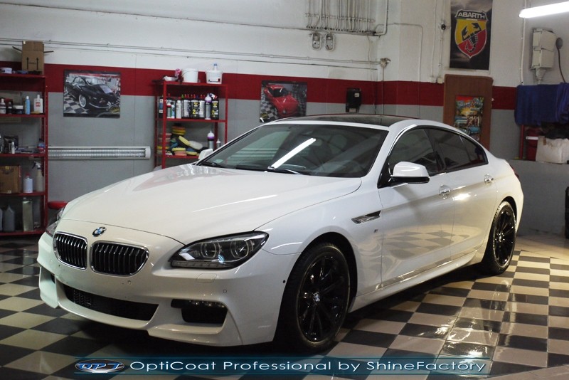 Dziś chcemy przedstawić pełną fotorelację z prac nad BMW 6 GC, czyli piękną 4 drzwiową limuzyną w nadwoziu Coupe. Auto trafiło do nas w celu idealnego detailingu i możliwie najlepszego zabezpieczenia. BMW przeszło nasz najszerszy pakiet prac dlatego też zaczęliśmy od detailingu felg i nadkoli oraz dogłębnego oczyszczenia lakieru. Następnie przystąpiliśmy do najbardziej czasochłonnego i najważniejszego etapu prac czyli korekty lakieru, usunęliśmy wszelkie niedoskonałości i zmatowienia, po kilku dniach prac nabrał idealnego połysku oraz był gotowy do zabezpieczanie powłoką ceramiczną. Finalnie zaaplikowaliśmy w natryskowy sposób maksymalnie grubą warstwę powłoki 9H+ Optimum OptiCoat Professional potwierdzoną testami TUV, pokrywając ją dla maksymalnego efektu połysku powłoką GlossCoat. Oczywiście zajęliśmy się także zabezpieczeniem pakietem powłok wszelkich innych elementów jak szyby, felgi, elementy nielakierowane czy klosze lamp, oczywiście po przygotowaniu i możliwej renowacji. Nie zapomnieliśmy także o dokładnym detailingu wszelkich elementów wnętrza, czyszczeniu i impregnacji skór, oraz całej komory silnika. Po kilkudziesięciu godzinach pracy kilku osób auto nabrało perfekcyjnego wyglądu oraz najlepszej z możliwej ochrony. Zapraszamy do bardzo szerokiej fotorelacji!