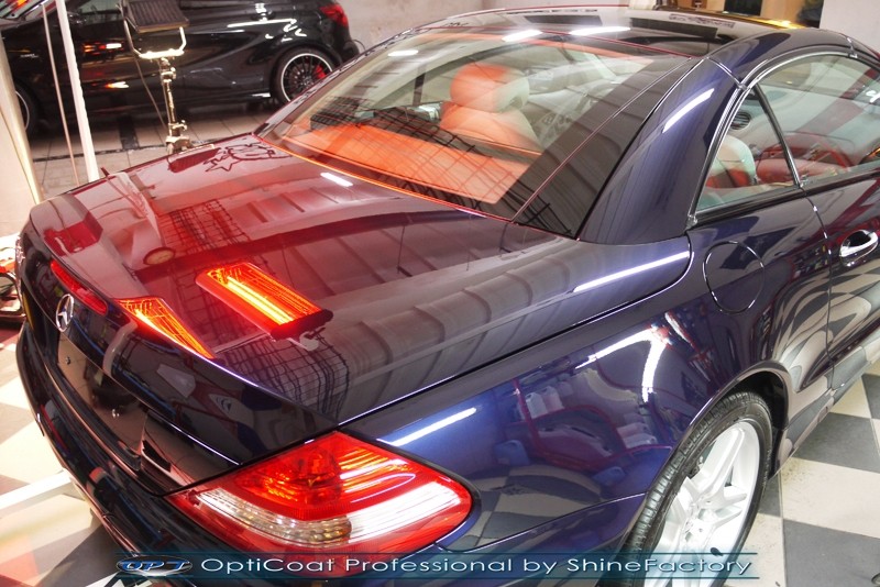 Witamy. Dziś chcemy pokazać Państwu pełną relację z prac nad Mercedesem SL. Autem zajęliśmy się maksymalnie kompleksowo, rozpoczęliśmy od zajęcia się nadkolami oraz wnętrzem kół. Następnie całe nadwozie auta zostało bardzo dokładnie i dogłębnie oczyszczone. Metaliczny granatowy lakier przez klika dni poddawany był korekcie czyli usunięciu wszelkich niedoskonałości (mikrorysy, zmatowienie) aby uzyskać maksymalnie dobry końcowy efekt wizualny. W między czasie kilkudniowych prac z lakierem zajmowaliśmy się bardzo dokładnie wnętrzem, oczyściliśmy i zaimpregnowaliśmy jasne skóry, wypraliśmy podłogi, zajęliśmy się wszystkimi innymi detalami wnetrza. Nie zapomnieliśmy, także zająć się komorą silnika. Po długiej korekcie lakieru, zajęciu się wszystkimi detalami na zewnątrz jak skorygowanie kloszy lamp, elementów dekoracyjnych, chromowanych itp całe auto zostało zabezpieczone pakietem powłok (szyby, koła, lakier, el. plastikowe) ceramicznych, głównie powłoką 9H+ OptiCoat Professional, co zapewniło maksymalną możliwą ochronę oraz perfekcyjny wygląd. Teraz utrzymanie auta w idealnej prezentacji będzie banalnie łatwe. Zapraszamy do szerokiej fotorelacji.