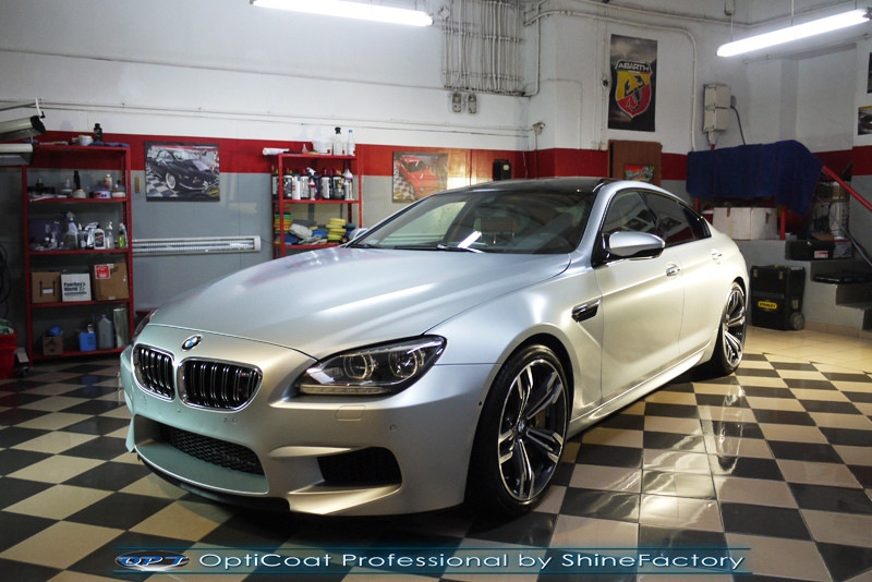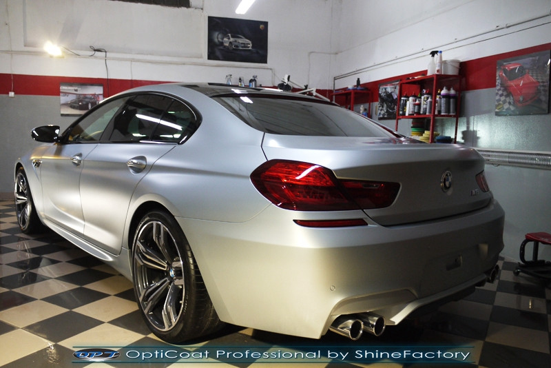 Witamy ponownie! Dziś pragniemy przedstawić Państwu fotorelację z detailingu BMW M6 GrandCoupe w wyjątkowym satynowym lakierze Frozen Silver Metallic. Właścicielowi zależało na zabezpieczeniu lakieru najwyższej jakości ceramiką w celu ochrony i łatwiejszego oczyszczania matowego lakieru. Pierwszorzędnie zdjęliśmy z auta koła aby dokładnie przeprowadzić detailing nadkoli, zacisków hamulcowych oraz wnętrza felg. Następnie po dogłębnym oczyszczeniu oraz inspekcji okazało się, iż niestety musimy delikatnie poprawić elementy w połysku przed położeniem ceramiki. Po poprawkach i odtłuszczeniu lakieru zaaplikowaliśmy powłokę ceramiczną certyfikowaną przez TUV- Optimum Professional. Następnie zabezpieczyliśmy wszelkie inne detale jak felgi auta, el. nielakierowane, szyby powłoką hydrofobową, klosze lamp itp itd. Finalnie całe auto zostało wygrzane lampami IR. Oczywiście całe wnętrze, praktycznie w każdym milimetrze pokryte skórami, zostało oczyszczone i zaimpregnowane różnymi kosmetykami w najdrobniejszym detalu. Nie zapomnieliśmy także o zabezpieczeniu komory silnika. M6 po kilku dniach prac nabrało idealnej prezentacji satynowego lakieru, perfekcyjnej prezentacji każdego detalu nadwozia oraz co najważniejsze najlepszej ochrony co zapewni zminimalizowane brudzenie oraz banalne utrzymanie auta w perfekcyjnym stanie. Zapraszamy do szerokiej fotorelacji i zdjęć efektu końcowego!