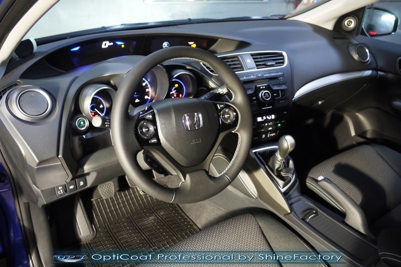 Witamy! Dziś zapraszamy do fotorelacji z zabezpieczenia nowej Hondy Civic, która trafiła do nas wprost z salonu w celu zabezpieczenia wszelkich detali. Wymagane było maksymalnie dobre zabezpieczenie każdego detalu auta w pakiecie NewShine. Zdecydowaliśmy się zabezpieczyć każdy element auta najlepszymi powłokami z rynku, sam lakier testowaną w laboratoryjny sposób przez TUV powłoką ceramiczną OptiCoat Professional. Oczywiście najpierw auto musiało zostać w specjalistyczny sposób dokładnie oczyszczone, następnie koniecznością przed aplikacją tak zaawansowanego zabezpieczenia konieczne było skorygowanie niedoskonałości pozostawionych przez salon/fabrykę (niestety uszkadzanie lakieru przez salon dalej jest nagminne..). Po korekcie, dokładnym przygotowaniu i odtłuszczeniu oraz natryskowym zaaplikowaniu grubej warstwy powłoki OC PRO lakier pokryliśmy dodatkową warstwą GlossCoat, która zapewniła maksymalny połysk i śliskość lakieru na wiele lat. Oczywiście całe wnętrze zostało zabezpieczone różnymi kosmetykami w najdrobniejszym detalu. Nie zapomnieliśmy, także o zabezpieczeniu nadkoli, wnętrza felg czy komory silnika. Auto po kilku dniach prac nabrało maksymalnego połysku i ekspozycji bogatego ziarna metaliku oraz co najważniejsze najlepszej ochrony co zapewni zminimalizowane brudzenie oraz banalne utrzymanie auta w perfekcyjnym stanie na wiele lat. Zapraszamy do szerokiej fotorelacji i zdjęć efektu końcowego!