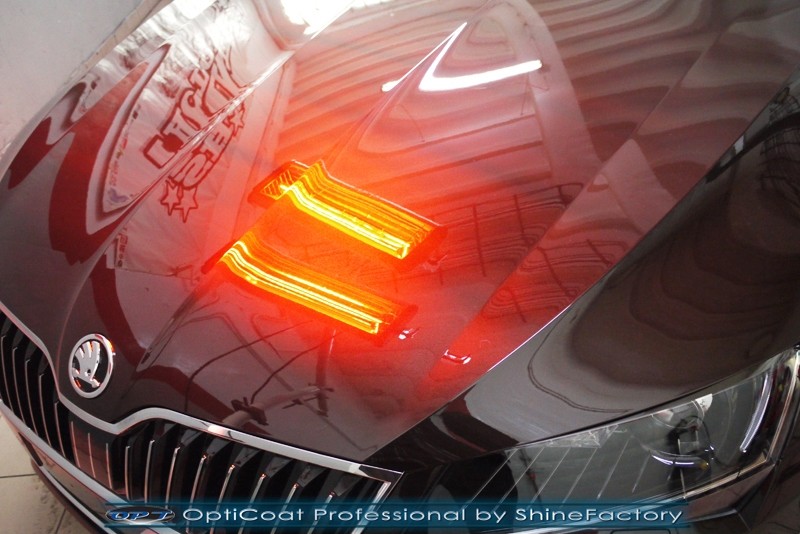Witamy. Tym razem chcemy przedstawić kilka zdjęć z zabezpieczenia nowego auta pakietem powłok ochronnych. Prace nad Skodą zaczęliśmy oczywiście o dokładnego oczyszczenia z naleciałości i zabezpieczeń fabrycznych, następnie przygotowaliśmy powierzchnię lakieru pod aplikację ceramiki delikatnie polerując go oraz bardzo mocno odtłuszczając. Kolejną czynnością było zaaplikowanie pakietu powłok na auto, zabezpieczyliśmy specjalną powłoką hydrofobową szyby, felgi, el. nielakierowane oraz oczywiście lakier powłoką OptiCoat Professional certyfikowaną przez TUV. Dzięki temu spotęgowaliśmy połysk lakieru oraz nadaliśmy mu wieloletnią ochroną najwyższej jakości.