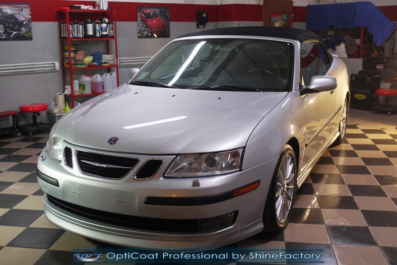 Ostatnimi czas mieliśmy za zadanie doprowadzić do idealnego stanu Saab’a w wersji Cabrio. Przez kilka dni kiedy zajmowaliśmy się autem przeprowadziliśmy nasz pełen pakiet MaxShine gdzie dokładnie oczyściliśmy nadwozie, oraz oczywiście przeprowadziliśmy pełną korektę lakieru. Po korekcie mocno metaliczny srebrny lakier został zabezpieczony topową powłoką ceramiczną OptiCoat Professional, dzięki czemu uzyskaliśmy najlepszy możliwy efekt wizualny oraz mocną ochronę. Nie zapomnieliśmy zadbać o każdy detal jak lampy, szyby, końcówki wydechu itp itd. Również ściągnęliśmy z auta koła aby oczyścić je od wewnątrz oraz zając się nadkolami, komora silnika została bezpiecznie oczyszczona. Całe wnętrze, wraz ze skórzaną tapicerką, zostało jak najdokładniej oczyszczone i zabezpieczone. Zapraszamy do fotorelacji.