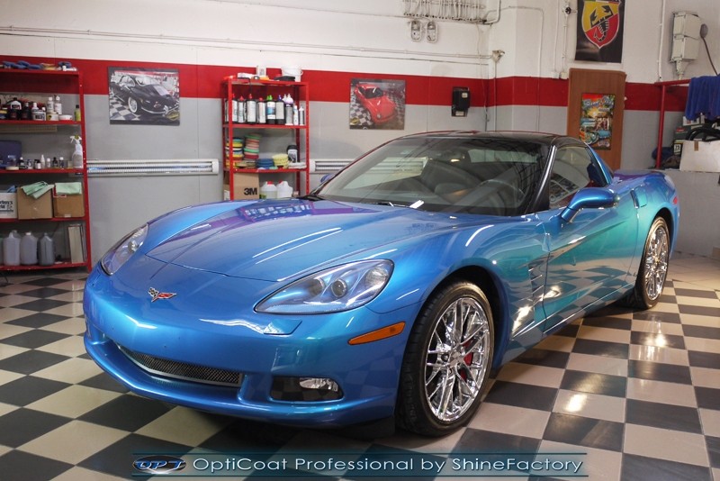Witamy Was! Dziś chcemy przedstawić pełną fotorelację z prac nad Chevrolet Corvette C6 w pięknym błękitnym mocno metalicznym lakierze. Auto trafiło do nas w celu idealnego detailingu i możliwie najlepszego zabezpieczenia. Corvetta przeszła nasz najszerszy pakiet prac dlatego też zaczęliśmy od detailngu felg oraz nadkoli oraz dogłębnego oczyszczenia lakieru. Następnie przystąpiliśmy do najbardziej czasochłonnego i najważniejszego etapu prac czyli korekty zniszczonego lakier, usunęliśmy wszelkie niedoskonałości i zmatowienie, po kilku dniach prac nabrał idealnego wyglądu oraz był gotowy do zabezpieczanie powłoką ceramiczną. Finalnie zastosowaliśmy wyjątkową powłokę 9H++ Optimum OptiCoat Professional potwierdzoną testami TUV, pokrywając ją dla maksymalnego efektu wizualnego powłoką GlossCoat, następnie powłoki zostały utwardzone lampami IR. Oczywiście zajęliśmy się także zabezpieczeniem pakietem powłok wszelkich innych elementów jak szyby, felgi, elementy nielakierowane czy nawet końcówki wydechu, oczywiście po przygotowaniu i możliwej renowacji. Nie zapomnieliśmy także o detailingu wszelkich elementów wnętrza oraz całej komory silnika wielkiego silnika . Po kilkudziesięciu godzinach pracy kilku osób auto nabrało perfekcyjnego wyglądu oraz najlepszej z możliwej ochrony. Zapraszamy do bardzo szerokiej fotorelacji!