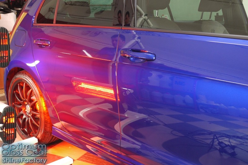 Witamy i zapraszamy do fotorelacji z zabezpieczenia kolejnego nowego VW Golfa R w swoim pięknym charakterystycznym niebieskim kolorze. Auto oczywiście pierwszorzędnie zostało dogłębnie oczyszczone z zabrudzeń (smoła, naleciałości drogowe) które już po krótkim użytkowaniu wżarły się w niezabezpieczony lakier, następnie usunęliśmy kilka głębszych uszkodzeń i bardzo delikatnie odświeżyliśmy maszynowo lakier. Następnie zaaplikowaliśmy powłokę Optimum GlossCoat oraz wygrzeliśmy w celu utwardzenia lampami IR w odpowiedniej temperaturze. Po zadbaniu o wszelkie inne detale auto zyskało idealny efekt wizualny i porządną ochronę na bardzo długi czas. Zapraszamy do zdjęć.