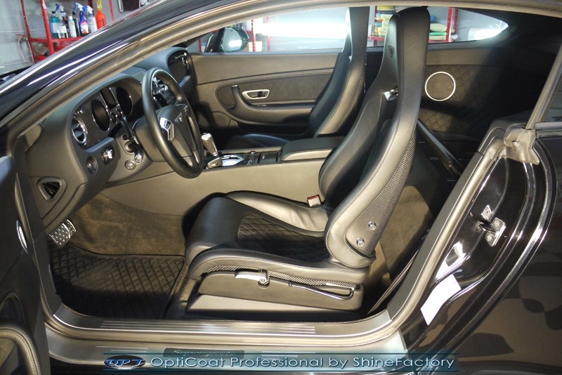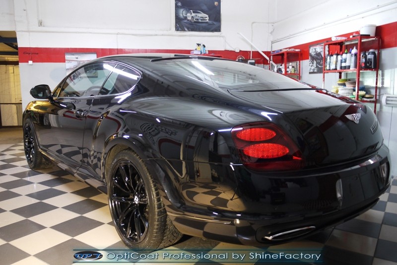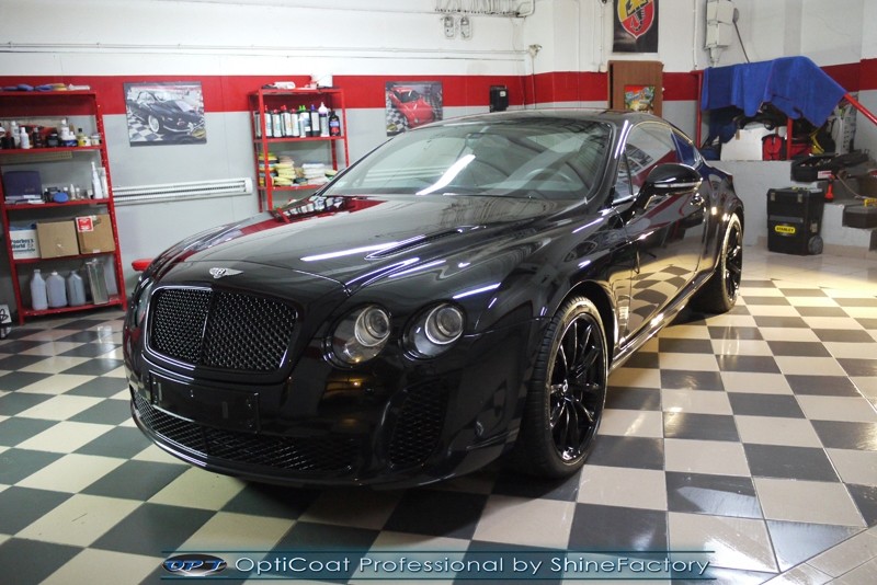 Witam Was ponownie. Dziś pragniemy przedstawić bardzo szeroką fotorelację z prac nad pięknym super autem jakim bez wątpienia jest Bentley z silnikiem V12 w bardzo limitowanej wersji SuperSports. Auto po kilku latach eksploatacji trafiło do nas w celu przeprowadzenia maksymalnego pakietu prac aby ponownie prezentowało się lepiej niż po wyjeździe z salonu oraz było zabezpieczone najwyższej światowej jakości powłoką ceramiczną. Oczywiście prace zaczęliśmy od kilkukrotnego dogłębnego oczyszczenia wszelkich elementów auta. Następnie po inspekcji przeszliśmy do pełnej korekty lakieru, po kilkudniowej renowacji oraz usunięciu kilku głębszych obcierek/zarysowań cała powłoka lakiernicza została doprowadzona do perfekcji, usunęliśmy każdą mikrorysę czy zmatowienie, dzięki czemu uzyskaliśmy klarowny i głęboki kolor czarnego metalicznego lakieru. Po korekcie przygotowaliśmy odpowiednio powierzchnię i zaaplikowaliśmy naszą najlepszą powłokę ochronna, testowaną przez TUV ceramikę OptiCoat Professional 9H++, dodatkowo pokrywając ją powłoka GlossCoat. W miedzy czasie zajmowaliśmy się wszelkimi elementami wnętrza, wszelkie el. karbonowe zostały spolerowane i nawoskowane woskiem naturalnym, skóry oczyszczone i zaimpregnowane, el. z tworzyw oczyszczone i zabezpieczone najwyżej jakości kosmetykami a podłogi wyprane ekstrakcyjnie. Nie zapomnieliśmy także zaopiekować się sercem auta, czyli silnikiem V12. Po detailingu, renowacji i zabezpieczeniu pakietem powłok wszelkich innych detali auta jak klosze lamp, el. chromowanych, szyb, emblematów, spolerowaniu i nakwarcowaniu felg itp itd, auto nabrało idealnej prezentacji i bardzo trwałej ochrony. Zapraszamy do bardzo szerokiej fotorelacji i zdjęć z efektu końcowego.
