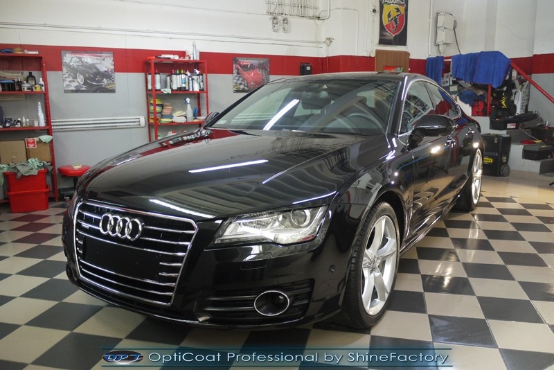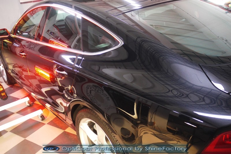 Witamy Was z nową fotorelacją! Dziś zapraszamy do obejrzenia zdjęć z prac nad Audi A7 w czarnym metalicznym lakierze. Auto przeszło nasz pełen pakiet MaxShine. Zaczęliśmy od oczyszczenia nadkoli oraz wnętrza felg, które następnie zostały porządnie zabezpieczone. Po dogłębnym oczyszczeniu nadwozia ze wszelkich naleciałości zajęliśmy się doprowadzeniem do ideału lakieru, po kilku dniach korekty uzyskaliśmy perfekcyjny efekt wizualny usuwając zmatowienie i mikrorysy, nadając lakierowi maksymalny połyski oraz głębie. Uwagę zwróciliśmy także na wszelkie inne detale nadwozia jak szyby, elementy chromowane, nielakierowane, klosze lamp itp itd. W między czasie zajęliśmy się z osobna każdym elementem wnętrza które oczyściliśmy i zabezpieczyliśmy odpowiednimi kosmetykami. Nie zapomnieliśmy zająć się komorą silnika. Finalnie każdy element auta został zabezpieczony dedykowaną powłoką ceramiczną/kwarcową, sam lakier najmocniejszą ochroną OptiCoat Professional 9H++ którą dodatkowo pokryliśmy warstwą GlossCoat. Po utwardzeniu lampami IR zestaw powłok zapewnił Audi maksymalny połysk, ochronę i śliskość lakieru na wiele lat. Zapraszamy do fotorelacji i zdjęć z efektu finalnego!