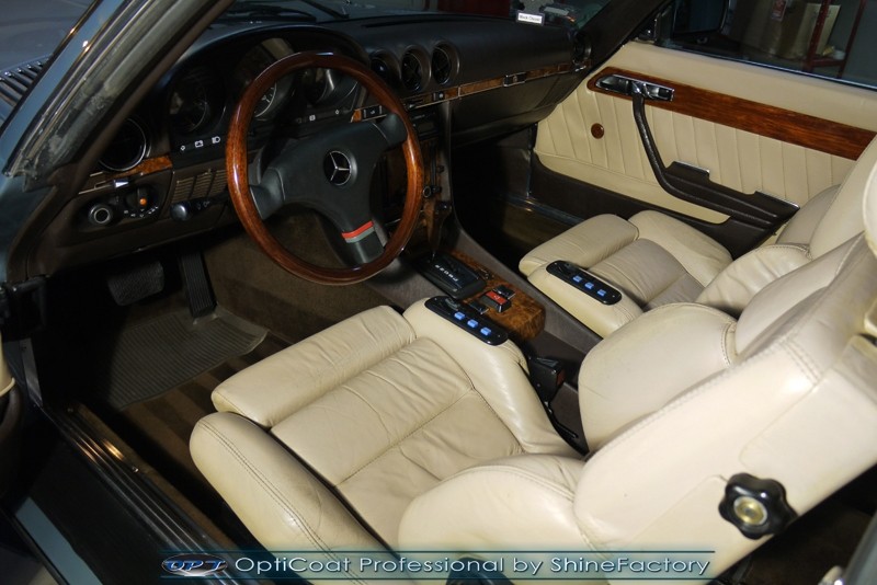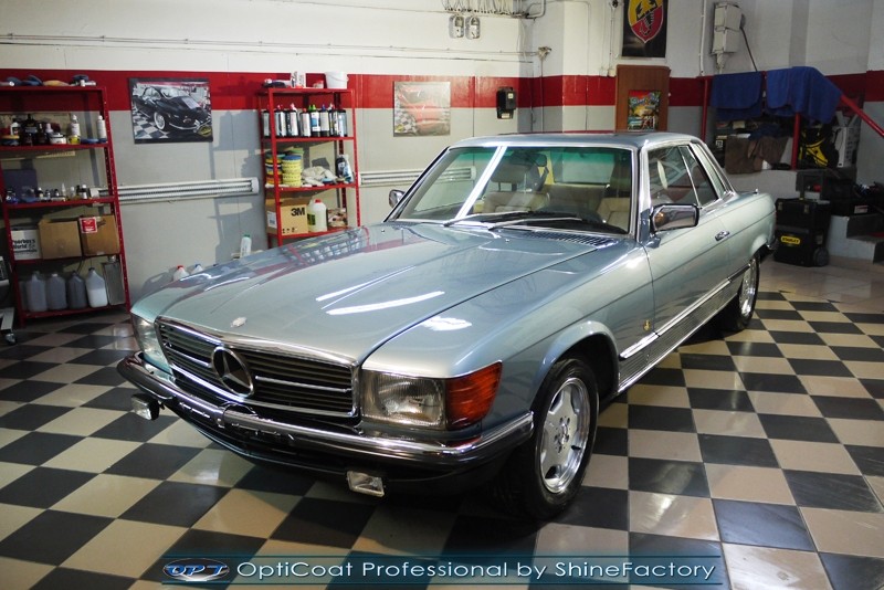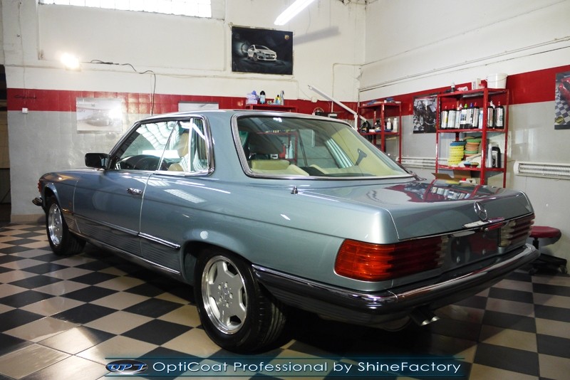 Dziś chcemy przedstawić fotorelację z detailingu Mercedesa SL (R107). Auto po wieloletniej restauracji trafiło do nas w celu finalnego dopracowania i ochrony lakieru najlepszym możliwym zabezpieczeniem, czyli powłoką OptiCoat Professional certyfikowaną przez TUV. Na aucie przeprowadzimy pełen pakiet zaczynając od detailingu nadkoli oraz felg od wewnątrz. Następnie po dokładnym oczyszczeniu auta z zewnątrz przeszliśmy do mozolnego doprowadzenia lakieru do ideału, usunęliśmy bardzo dużo zmatowień i innych uszkodzeń pozostawionych przez lata eksploatacji i poprawek lakierniczych. Po pracach polerskich całe nadwozie i wszelkie inne elementy zostały zabezpieczone pakietem powłok oraz utwardzone lampami IR. Zajęliśmy się, także całym wnętrzem, które w każdym detalu zostało oczyszczone i zabezpieczone warz z el. skórzanymi. Nie zapomnieliśmy, także zająć się całą komorą silnika. Po wielu godzinach prac nad samym lakierem i detalami auta, zabezpieczeniu powłoką ceramiczną PRO, otrzymaliśmy finalny efekt wizualny a przede wszystkim najlepszą ochronę. To wszystko zobaczycie w bardzo szerokiej fotorelacji. Zapraszamy.