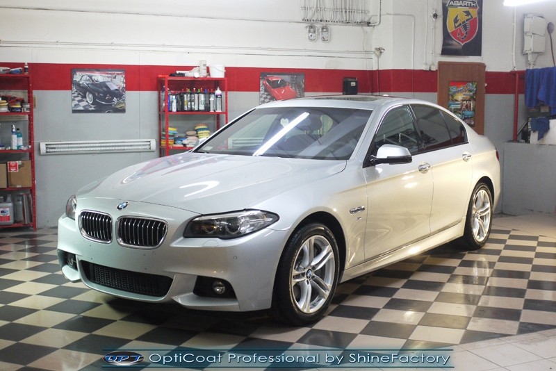 Witamy ponownie! Dziś pragniemy przedstawić Państwu fotorelację z prac nad fabrycznie nowym BMW serii 5. Auto choć nowe, niezabezpieczony lakier złapał już bardzo dużo naleciałości dlatego też pierwszorzędnie całe nadwozie musiało zostać dogłębnie oczyszczone z naleciałości i smoły drogowej. Ściągnęliśmy także z auta koła w celu dokładnego zabezpieczenia felgi i nadkoli. Następnie kilka mocno zniszczonych detali zostało skorygowane (jak lampy auta), cały lakier w bardzo ładnym stanie został bardzo delikatnie przepolerowany aby osiągnąć perfekcyjny połysk i prawidłowe podłoże pod powłokę. Sam lakier został zabezpieczony powłoką 9H++ Optimum Professional, na którą w celu maksymalizacji efektu położyliśmy powłokę GlossCoat. Nie zapomnieliśmy o zabezpieczaniu każdego detalu wnętrza auta oraz komory silnika. Po aplikacji pakietu powłok nie tylko na sam lakier ale i szyby, felgi, klosze lamp itp itd, BMW zyskało perfekcyjny wygląd i trwałą ochronę potwierdzona testami TUV. Zapraszamy do szerokiej fotorelacji i zdjęć efektu końcowego! Film z działania powłoki- https://www.youtube.com/watch?v=B1RIsgeZb9Q