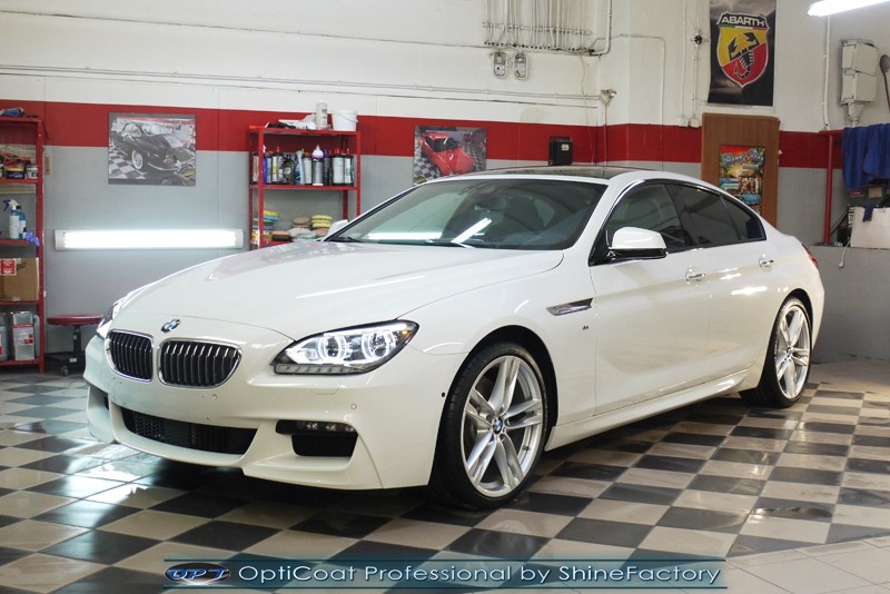 Witamy! Dziś pragniemy zaprosić do szerokiej fotorelacji z zabezpieczenia salonowej limuzyny o sportowym zacięciu spod znaku BMW, mianowicie BMW 6 GranTurismo. Nasz stały klient poprosił o maksymalnie dobre zabezpieczenie każdego detalu auta w pakiecie NewShine. Zdecydowaliśmy się zabezpieczyć każdy element auta najlepszymi powłokami z rynku, sam lakier testowaną w laboratoryjny sposób przez TUV powłoką ceramiczną OptiCoat Professional. Oczywiście najpierw auto musiało zostać w specjalistyczny sposób dokładnie oczyszczone, następnie koniecznością było usunięcie z lakieru niedoskonałości, niestety salon nie popisał się i niektóre elementy były w mocny sposób zniszczone, należało je poprawić przed aplikacją tak zaawansowanego zabezpieczenia. Po korekcie, dokładnym przygotowaniu i odtłuszczeniu oraz precyzyjnym zaaplikowaniu powłoki OC PRO lakier pokryliśmy dodatkową warstwą GlossCoat która zapewniła maksymalny połysk i śliskość lakieru na wiele lat. Oczywiście całe wnętrze zostało zabezpieczone różnymi kosmetykami w najdrobniejszym detalu wraz z zaimpregnowaniem delikatnych skór. Nie zapomnieliśmy, także o zabezpieczeniu nadkoli, wnętrza felg czy komory silnika. BMW po kilku dniach prac nabrało czystej i bardzo połyskliwiej bieli oraz co najważniejsze najlepszej ochrony co zapewni zminimalizowane brudzenie oraz banalne utrzymanie auta w perfekcyjnym stanie na wiele lat. Zapraszamy do szerokiej fotorelacji i zdjęć efektu końcowego! Film z działania powłoki po 10tyś km- https://www.youtube.com/watch?v=_elwZzQ94Dk