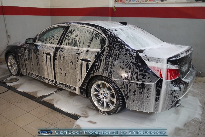 Tym razem chcemy zaprosić Państwa do fotorelacji z prac nad BMW serii 5 w grafitowym kolorze, który po pracy nabrał niewiarygodnego efektu wizualnego. Oczywiście kilkudniowe prace zaczęliśmy od ściągnięcia kół, detailingu wnętrza felg oraz nadkoli. Następnie po dogłębnym oczyszczeniu nadwozia przeszliśmy do gruntownej korekty bardzo mocno zniszczonego lakieru. Po kilku długich dniach usunęliśmy wszelkie niedoskonałości, zmatowienie, mniejsze i większe rysy dzięki czemu uzyskaliśmy klarowny i przejrzysty lakier z mocno widocznym ziarnem metaliku. Finalnie pokryliśmy auto prawdopodobnie najlepszą powłoka ochronna na rynku, testowaną przez TUV ceramiką OptiCoat Professional 9H++ oraz dodatkową warstwą GlossCoat. Zajęliśmy się także komorą silnika oraz wnętrzem auta gdzie oczyściliśmy i zabezpieczyliśmy wszystkie mocno zabrudzone elementy głównie skupiając uwagę na bardzo zabrudzonych skórach. Po zajęciu się i zabezpieczeniu pakietem powłok wszystkich innych elementów jak klosze lamp, el. chromowane czy nielakierowany, felgi itp auto zyskało perfekcyjny wygląd i trwałą ochronę. Zapraszamy do bardzo szerokiej fotorelacji.