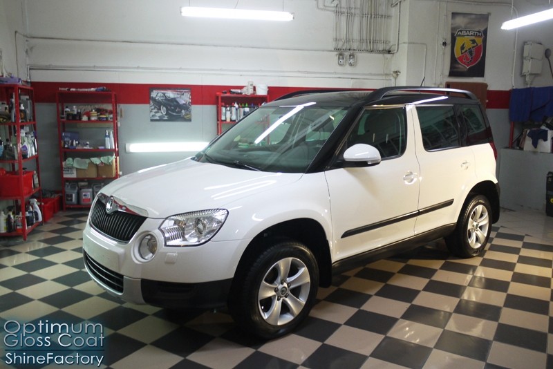 Dziś chcemy pokazać Wam fotorelację z pracy nad białą Skodą Yeti. Właścicielowi zależało na doprowadzeniu kilkuletniego auta do salonowego stanu oraz zabezpieczeniu powłoką ochronną. Po kilkukrotnym oczyszczeniu różnymi preparatami, przeprowadziliśmy pełną korektę mocno zniszczonego lakieru, przy białym lakierze jest to bardzo ważne ponieważ należy usunąć maksymalnie możliwą ilość niedoskonałości aby uzyskać idealną biel i połysk. Finalnie zaaplikowaliśmy na auto pakiet powłok, zabezpieczyliśmy szyby, el. nielakierowane, klosze lamp, koła i oczywiście lakier powłoką GlossCoat. Zajęliśmy się także wnętrzem Skody. Zapraszamy do zdjęć.