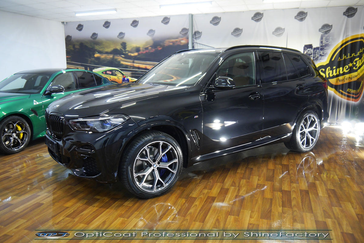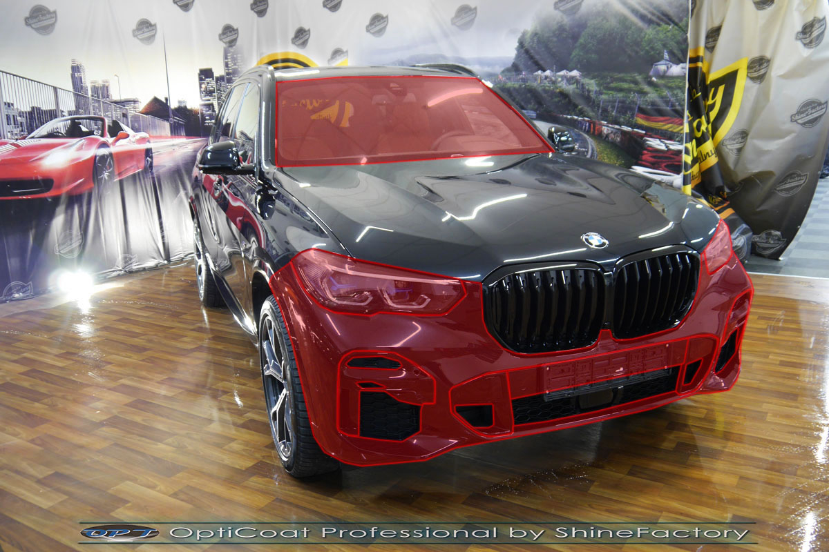 Połączenie bezbarwnych samo-regeneracyjnych folii oraz powłok ceramicznych staje się powoli standardem w idealnym zabezpieczeniu nowego auta. Tym razem mieliśmy przyjemność zająć się nowym BMW X5 naszego stałego klienta. Auto zostało przez nas maksymalnie zabezpieczone przed wszystkimi możliwymi uszkodzeniami. Wykorzystane do tego zostały najlepsze na rynku bezbarwne folie ochronne SunTek Ultra PPF oraz natryskowa ceramika OptiCoat PRO. Oczywiście prace rozpoczęliśmy od dokładnego oczyszczenia całego nadwozia z naleciałości oraz delikatnej korekty lakieru w celu usunięcia potransportowych/posalonowych niedoskonałości. Następnie przystąpiliśmy do aplikacji bezbarwnych folii ochronnych na najbardziej narażone na mocne uszkodzenia el. auta, oczywiście zdecydowaliśmy się jak zawsze wybrać produkt bezkonkurencyjny i nowoczesny na rynku, czyli folie regeneracyjne SunTek Ultra PPF. Po aplikacji folii przeszliśmy do zabezpieczania wszelkich el. auta powłokami, zaaplikowaliśmy w natryskowy sposób grubą warstwę powłoki 9H+ Optimum OptiCoat Professional potwierdzoną testami TUV, pokrywając ją dla maksymalnego efektu wizualnego powłoką GlossCoat, która na końcu została utwardzona w odpowiedniej temp. lampami IR. Oczywiście zajęliśmy się, także zabezpieczeniem pakietem powłok wszelkich innych elementów jak szyby (Gtechniq G1), felgi (DLUX), lampy czy elementy nielakierowane, a także całe wnętrze wraz z zaimpregnowaniem delikatnych skór. Po kilkudziesięciu godzinach pracy BMW nabrało perfekcyjnego wyglądu, połysku oraz co najważniejsze najmocniejszej praktycznie pancernej ochrony na lata. Zapraszamy do szerokiej fotorelacji! Oklejone zostały przednie elementy auta głównie w celu ochrony przed mocnymi mechanicznymi uszkodzeniami jak np. odpryski od kamieni, piaskowanie od żwiru drogowego, mocniejszymi rysami, obiciami czy nawet drobnymi obcierkami parkingowymi. Dokładnie oklejone zostały: