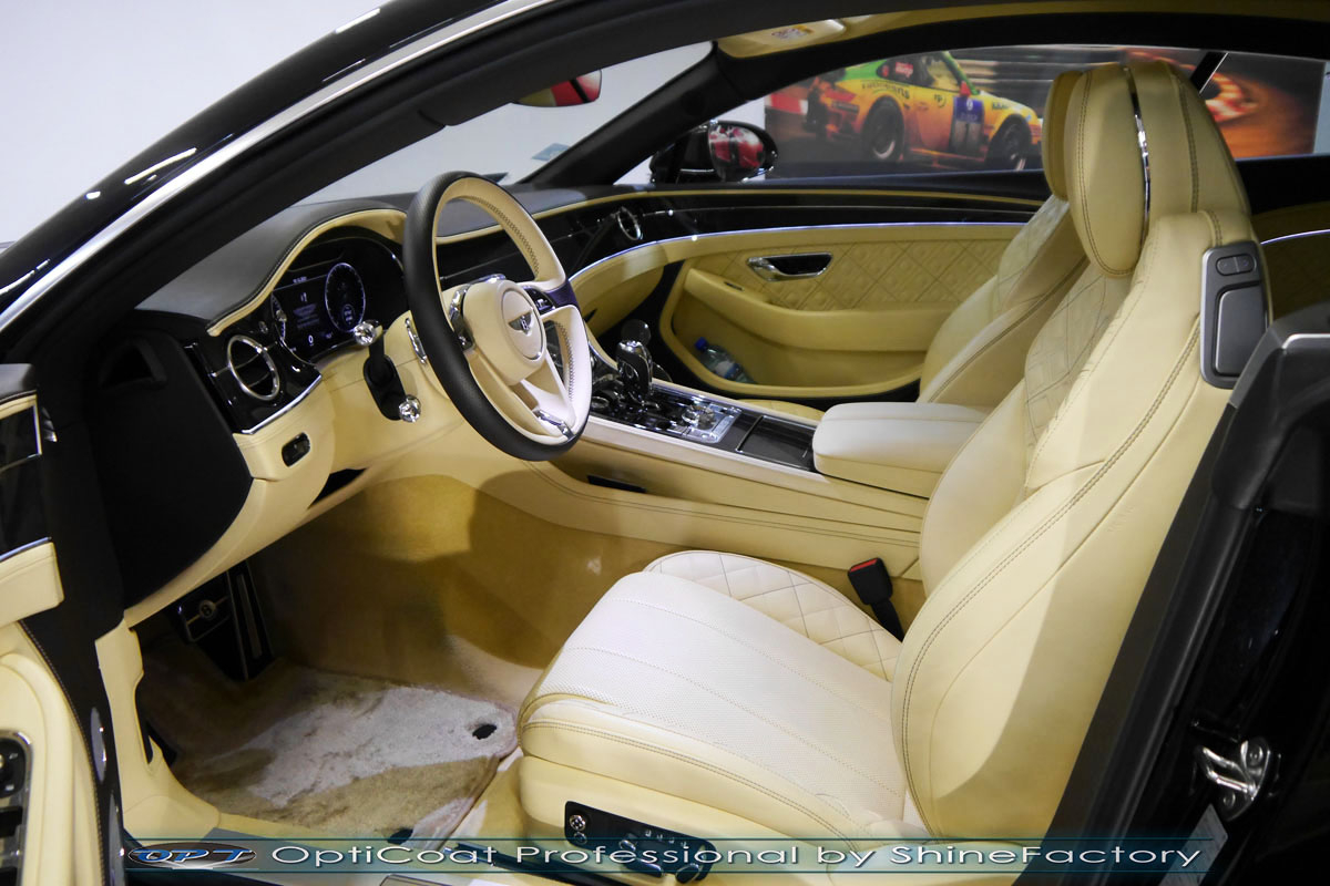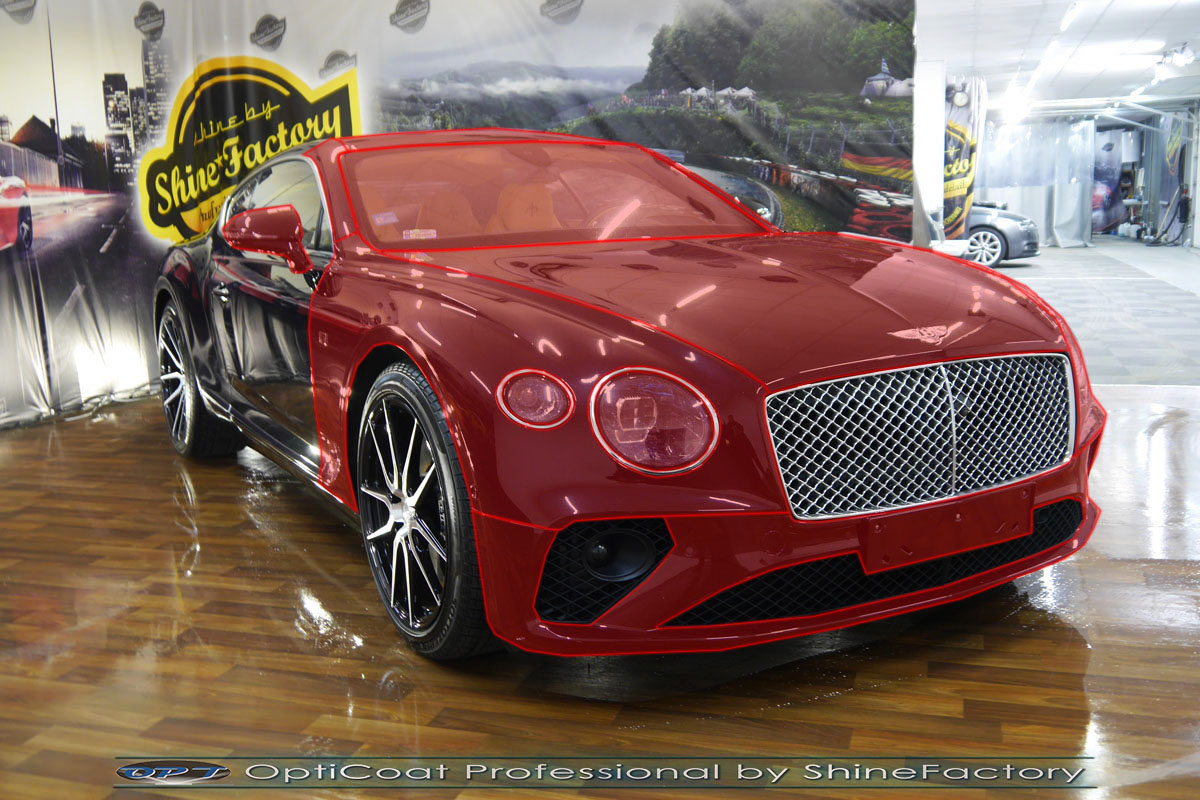 Połączenie bezbarwnych samo-regeneracyjnych folii oraz powłok ceramicznych staje się powoli standardem w idealnym zabezpieczeniu nowego auta. Tym razem mieliśmy przyjemność zająć się Bentley'em Continetal z niedużym przebiegiem. Auto zostało maksymalnie zabezpieczone przed wszystkimi możliwymi uszkodzeniami. Wykorzystane do tego zostały najlepsze na rynku bezbarwne folie ochronne oraz natryskowa ceramika OptiCoat PRO. Oczywiście prace rozpoczęliśmy od dokładnego oczyszczenia całego nadwozia z naleciałości oraz korekty lakieru w celu usunięcia niedoskonałości (takich jak zmatowienia, mikrorysy, wżery po ostrej chemii). Nie tylko cały front został zabezpieczony foliami. Pokryliśmy nią dodatkowo szybę czołową w celu ochrony przed opryskami od kamieni. Po polerowaniu na wszelkie el. auta zaaplikowaliśmy powłoki ceramiczne, na lakier zaaplikowaliśmy w natryskowy sposób grubą warstwę powłoki 9H+ Optimum OptiCoat Professional potwierdzoną testami TUV, pokrywając ją dla maksymalnego efektu wizualnego powłoką GlossCoat, która na końcu została utwardzona w odpowiedniej temp. lampami IR. Oczywiście zajęliśmy się, także zabezpieczeniem pakietem powłok wszelkich innych elementów jak szyby (Gtechniq G1), felgi (DLUX), lampy czy elementy nielakierowane, a także całe wnętrze wraz z zaimpregnowaniem delikatnych skór. Po kilkudziesięciu godzinach pracy Bentley nabrał perfekcyjnego wyglądu, połysku oraz co najważniejsze najmocniejszej praktycznie pancernej ochrony na lata. Zapraszamy do szerokiej fotorelacji! Oklejone zostały przednie elementy auta głównie w celu ochrony przed mocnymi mechanicznymi uszkodzeniami jak np. odpryski od kamieni, piaskowanie od żwiru drogowego, mocniejszymi rysami, obiciami czy nawet drobnymi obcierkami parkingowymi. Dokładnie oklejone zostały: