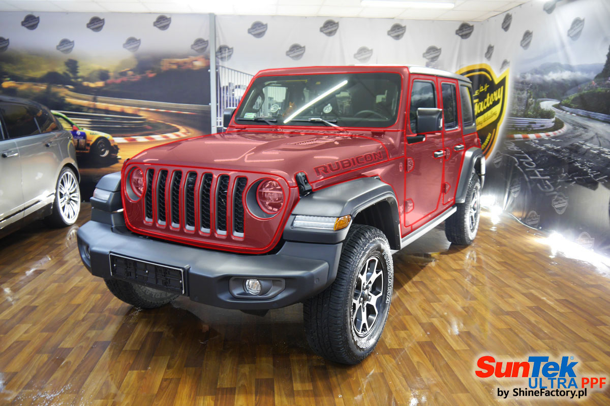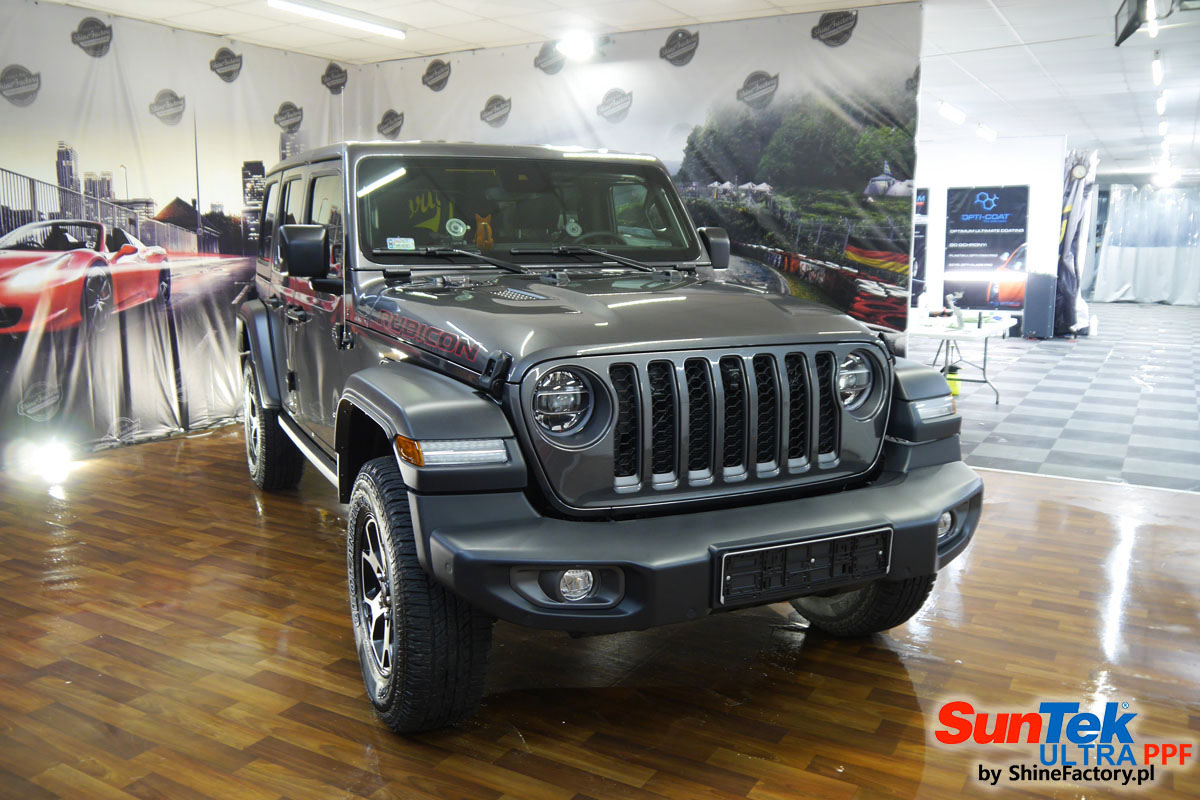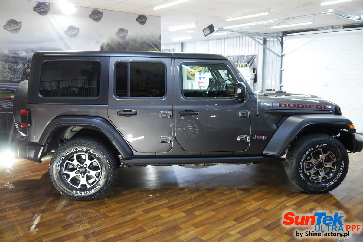 Zabezpieczenie frontów aut bezbarwnymi foliami ochronnymi staje się powoli standardem, coraz częściej także zabezpieczane w ten sposób są auta w całości co daje do tego czasu nieosiągalne perfekcyjne zabezpieczenie i efekt wizualny. Tym razem mieliśmy przyjemność zająć się terenowym Jeep'em Wrangler. Decyzja wz. z zabezpieczeniem padła na bezkompromisowe połączanie znakomitych bezbarwnych folii ochronnych SunTek Ultra PPF z 10 letnią gwarancją oraz pakietu powłok ceramicznych. Standardowo prace zaczęliśmy od bardzo dokładnego oczyszczenia nadwozia z wszelkich naleciałości. Kolejno zajęliśmy się inspekcją lakieru i skorygowaniem oraz doprowadzeniem go do możliwej perfekcji. Po przygotowaniu przeszliśmy do zabezpieczenia każdego cm auta, najpierw aplikując bezbarwne folie ochronne. Folie zazwyczaj aplikuje się na najbardziej narażone el. auta jak przód, tym razem zdecydowaliśmy się praktycznie całe auto pokryć najlepszymi na świecie regeneracyjnymi foliami SunTek Ultra aby uzyskać 100% ochronę lakieru, który będzie całkowicie izolowany od środowiska zewnętrznego i nic nie będzie wstanie go uszkodzić. Po aplikacji folii przeszliśmy do zabezpieczania wszelkich el. auta powłokami, zaaplikowaliśmy pakiet powłok na całe auto, folie, szyby (Gtechniq G1), felgi (DLUX), elementy nielakierowane, a także całe wnętrze wraz z zaimpregnowaniem delikatnych skór. Po kilkudziesięciu godzinach pracy Jeep nabrał perfekcyjnego wyglądu, połysku oraz co najważniejsze najmocniejszej praktycznie pancernej ochrony na lata. Zapraszamy do szerokiej fotorelacji!