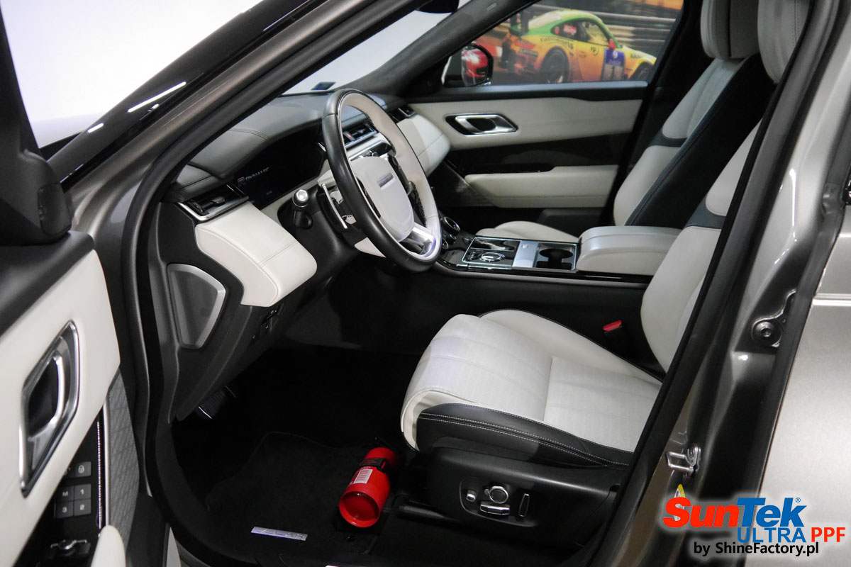 Zabezpieczenie frontów aut bezbarwnymi foliami ochronnymi staje się powoli standardem, coraz częściej także zabezpieczane w ten sposób są auta w całości co daje do tego czasu nieosiągalne perfekcyjne zabezpieczenie i efekt wizualny. Tym razem mieliśmy przyjemność zająć się RR Velar. Decyzja wz. z zabezpieczeniem padła na bezkompromisowe połączanie znakomitych bezbarwnych folii ochronnych SunTek Ultra PPF z 10 letnią gwarancją oraz pakietu powłok ceramicznych. Standardowo prace zaczęliśmy od bardzo dokładnego oczyszczenia nadwozia z wszelkich naleciałości. Kolejno zajęliśmy się inspekcją lakieru i skorygowaniem oraz doprowadzeniem go do możliwej perfekcji. Po przygotowaniu przeszliśmy do zabezpieczenia każdego cm auta, najpierw aplikując bezbarwne folie ochronne. Folie zazwyczaj aplikuje się na najbardziej narażone el. auta jak przód, tym razem zdecydowaliśmy się praktycznie całe auto pokryć najlepszymi na świecie regeneracyjnymi foliami SunTek Ultra aby uzyskać 100% ochronę lakieru, który będzie całkowicie izolowany od środowiska zewnętrznego i nic nie będzie wstanie go uszkodzić. Po aplikacji folii przeszliśmy do zabezpieczania wszelkich el. auta powłokami, zaaplikowaliśmy pakiet powłok na całe auto, folie, szyby (Gtechniq G1), felgi (DLUX), elementy nielakierowane, a także całe wnętrze wraz z zaimpregnowaniem delikatnych skór. Po kilkudziesięciu godzinach pracy Velar nabrał perfekcyjnego wyglądu, połysku oraz co najważniejsze najmocniejszej praktycznie pancernej ochrony na lata. Zapraszamy do szerokiej fotorelacji!