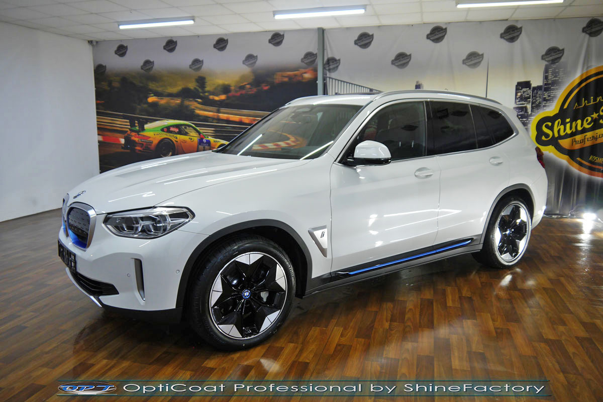 Witamy. Tym razem chcemy przedstawić fotorelację z prac nad salonowo nowym BMW iX3, które zostało nam powierzone przez naszego stałego klienta w celu pokrycia pakietem powłok ceramicznych, szczególnie na aktualne trudne warunki atmosferyczne oraz sól na drogach. Prace nad nadwoziem rozpoczęliśmy od dokładnego oczyszczenia i odtłuszczenia, następnie lakier przeszedł delikatną korektę w celu usunięcia po salonowych niedoskonałości. Po tych czynnościach przeszliśmy do aplikacji powłok na wszelkie elementy jak lakier, szyby (bezapelacyjnie najlepszą powłoką Gtechniq G1), felgi (pancerny CQ DLUX), detale itp itd. Najważniejsze, na sam lakier zaaplikowaliśmy powłokę ceramiczną OptiCoat Professional, która zapewni ochronę, zminimalizowane brudzenie oraz ułatwione do maksimum mycie. Całe wnętrze zostało zaimpregnowane kosmetykami najwyższej ligi, z naciskiem na el. plastikowe, delikatne skóry i el. z alkantary. Dzięki detailingowi oraz finalnemu pokryciu ceramiką auto przez długi czas będzie cieszyło oko idealną prezentacją lakieru. Zapraszamy do szerokiej fotorelacji i zdjęć efektu końcowego!